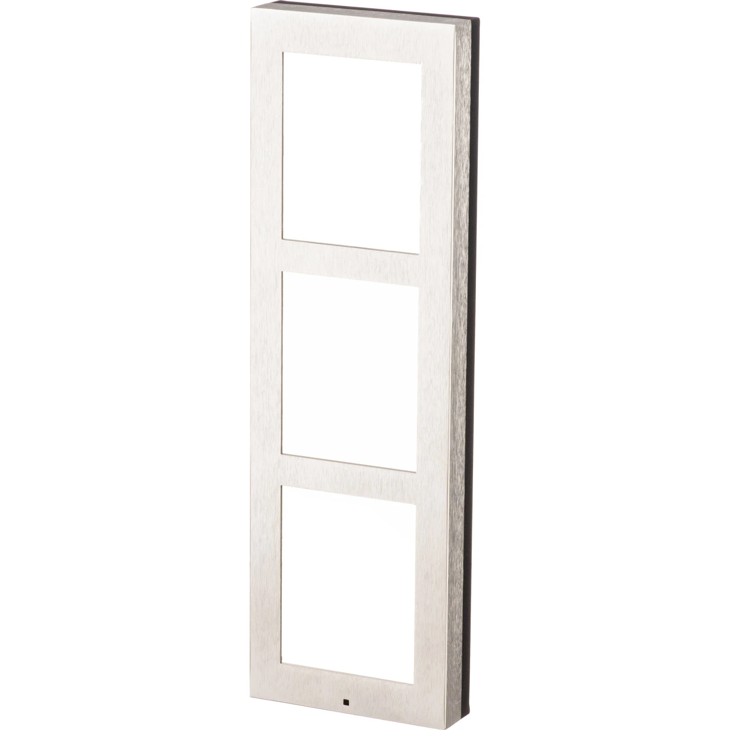 The Surface Frame for Three IP Verso Modules (Nickel) is designed to be used with three mounted IP Verso Modules.