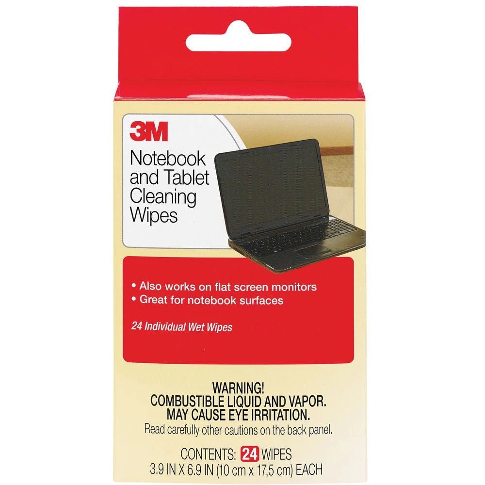 The CL630 Notebook Screen Cleaning Wipes from 3M remove dust, fingerprints, and smudges from notebook screens. These wipes are non-abrasive, non-streaking, pre-moistened, and portable. The 24 individually wrapped wipes are safe for notebooks, tablets, flat panel and CRT screens.