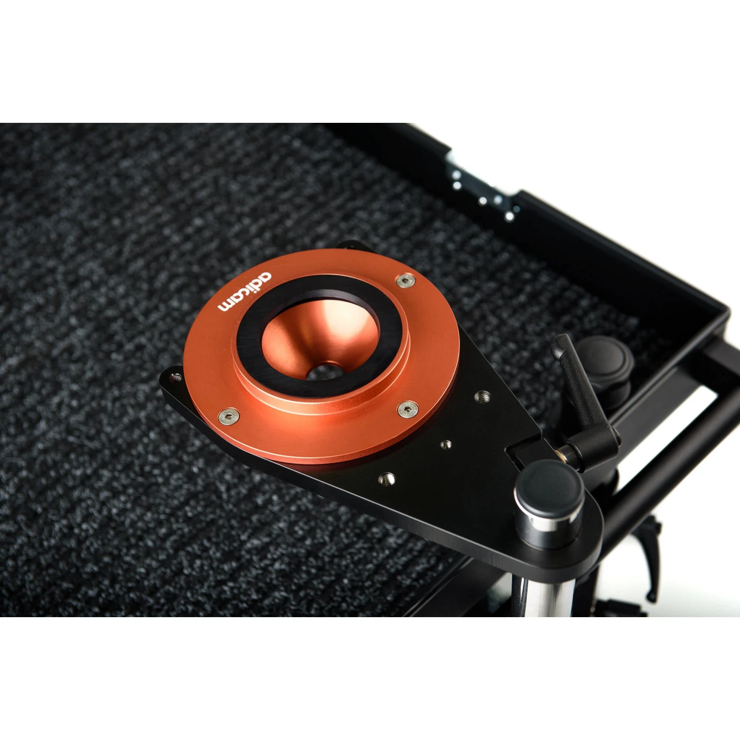 The 75mm Bowl Adapter is compatible with the 100mm Ball Mount and 100mm Ball Plate used on adicam carts. The adapter secures into one of these and lets you mount 75mm tripod heads.