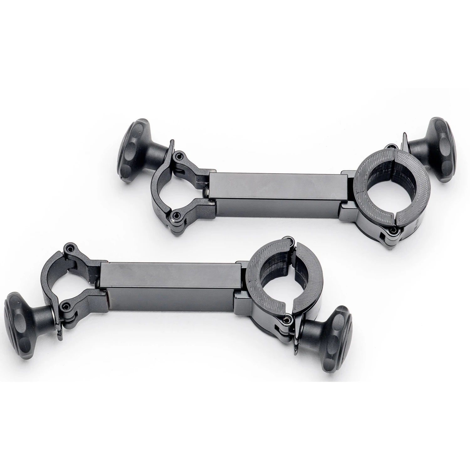 The Crossbar Clamps pair is secured to the legs of your adicam cart to support attaching 35mm diameter tripods and tubes. They’re ideally mounted on the narrow side of the cart. The weight capacity is 66 lb.