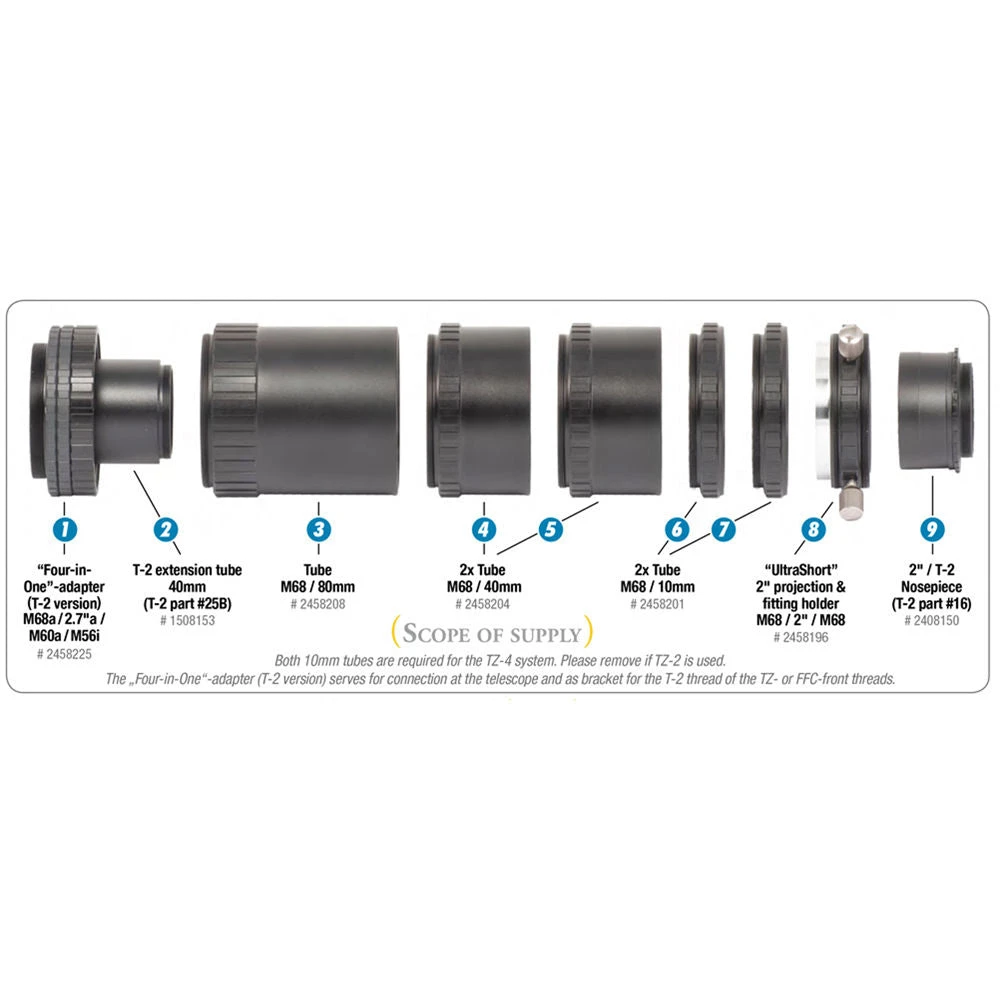The 10mm-long Alpine Astronomical Baader M68 Extension Tube is part of their Tele-Compendium astrophotography system. Using this tube by itself, or stacked with other sizes of extension tubes, enables you to adjust the focal length according to the needs of your setup to achieve the best results. The inside of the tube is blackened so stray light is blocked, helping to maintain maximum contrast.