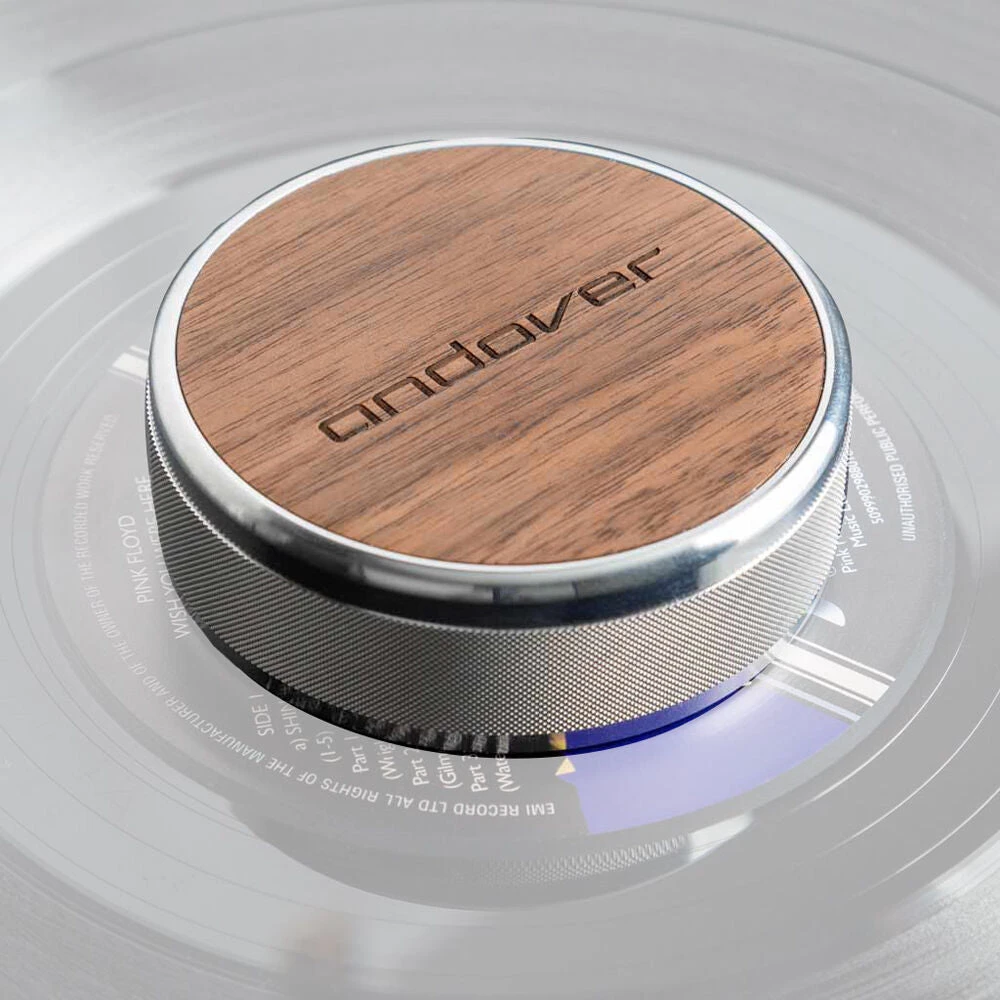 Andover’s genuine Walnut wood and Aluminum Record Damping Weight reduces both record warp and acoustic resonances, while adding a stylish addition to your turntable setup