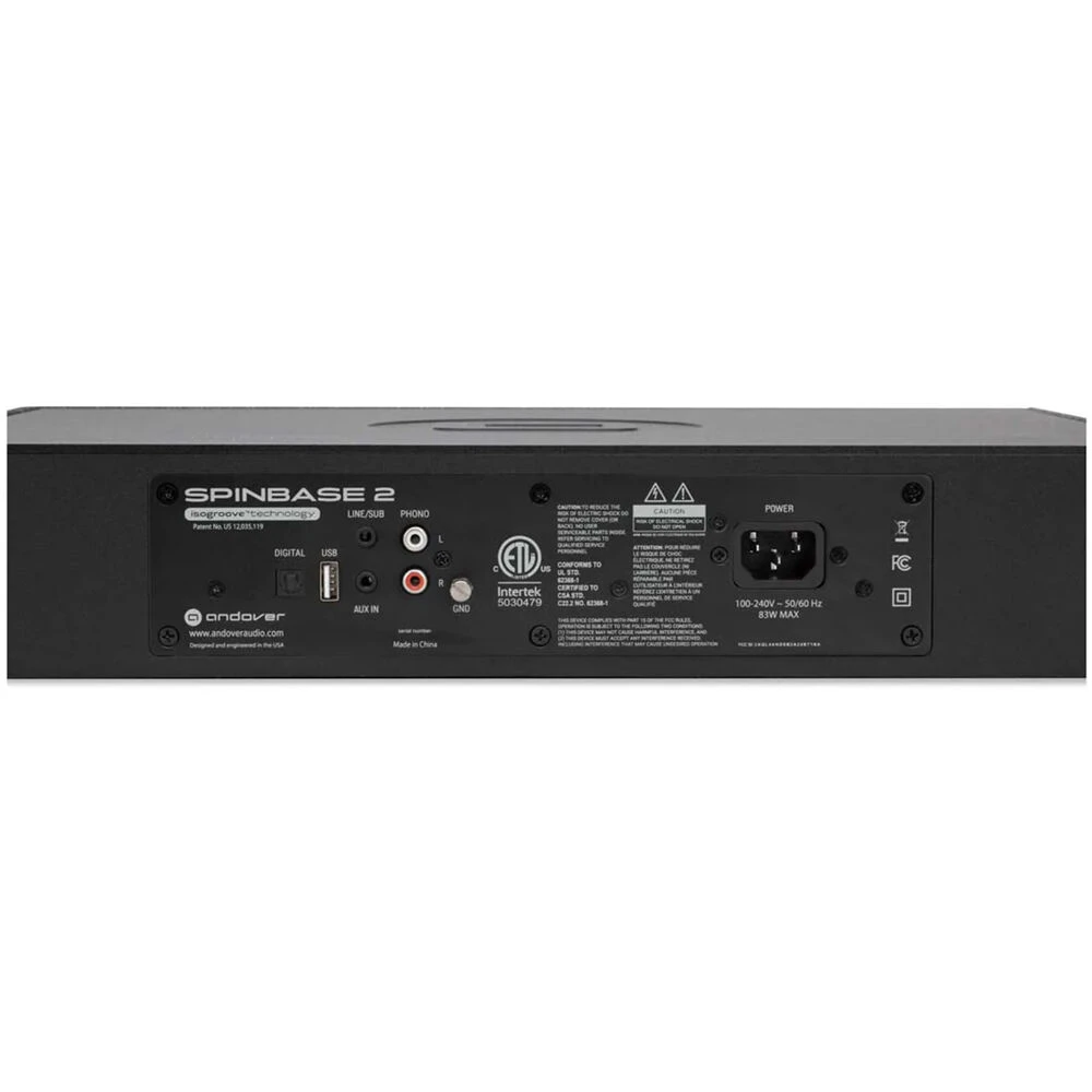 Andover Audio. Part base, part speaker, the SpinBase 2 lets you place your turntable right on top of it as it blasts clear audio and deep bass from your favorite vinyl. IsoGroove is the technology that makes it all possible, eliminating the vibrations that would normally ruin playback. The unit houses an array of woofers and tweeters that utilize dual direct drive amplification, where each one gets its own dedicated amplifier for a 270° detailed soundstage that fills the room. Multiple inputs are available and the SpinBase 2 is made to work with any turntable, built-in preamp or not, and offers two-way Bluetooth for convenient streaming and private listening.