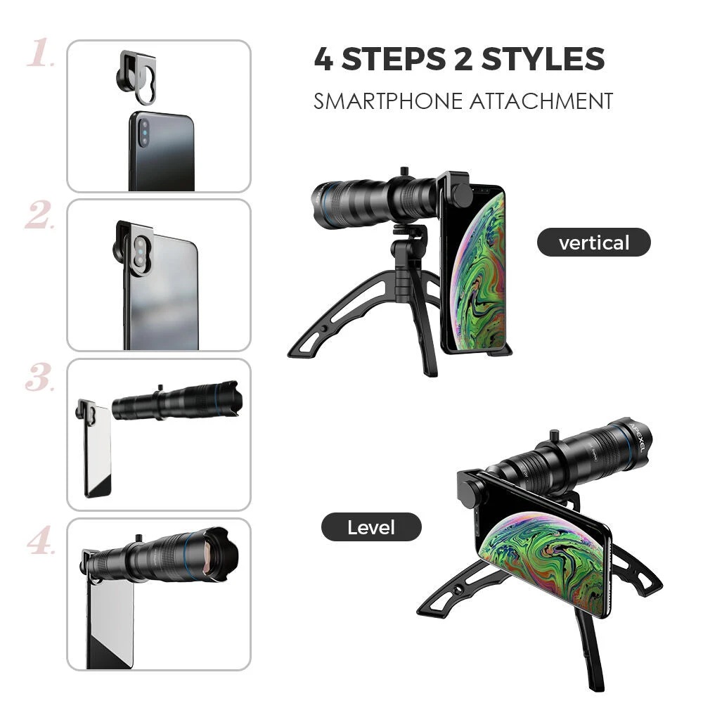 - Apexel 36x Telephoto Zoom Lens with Tripod for Smartphones