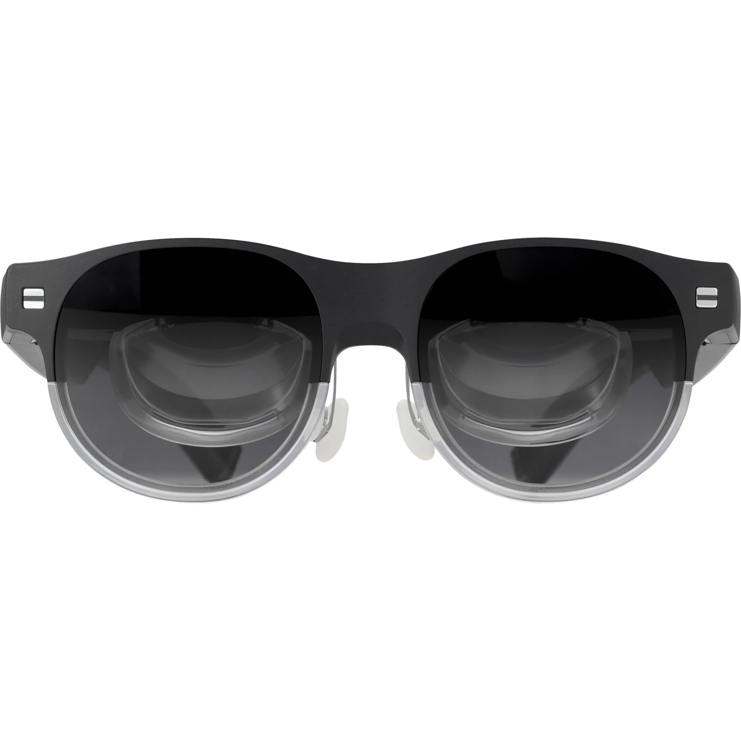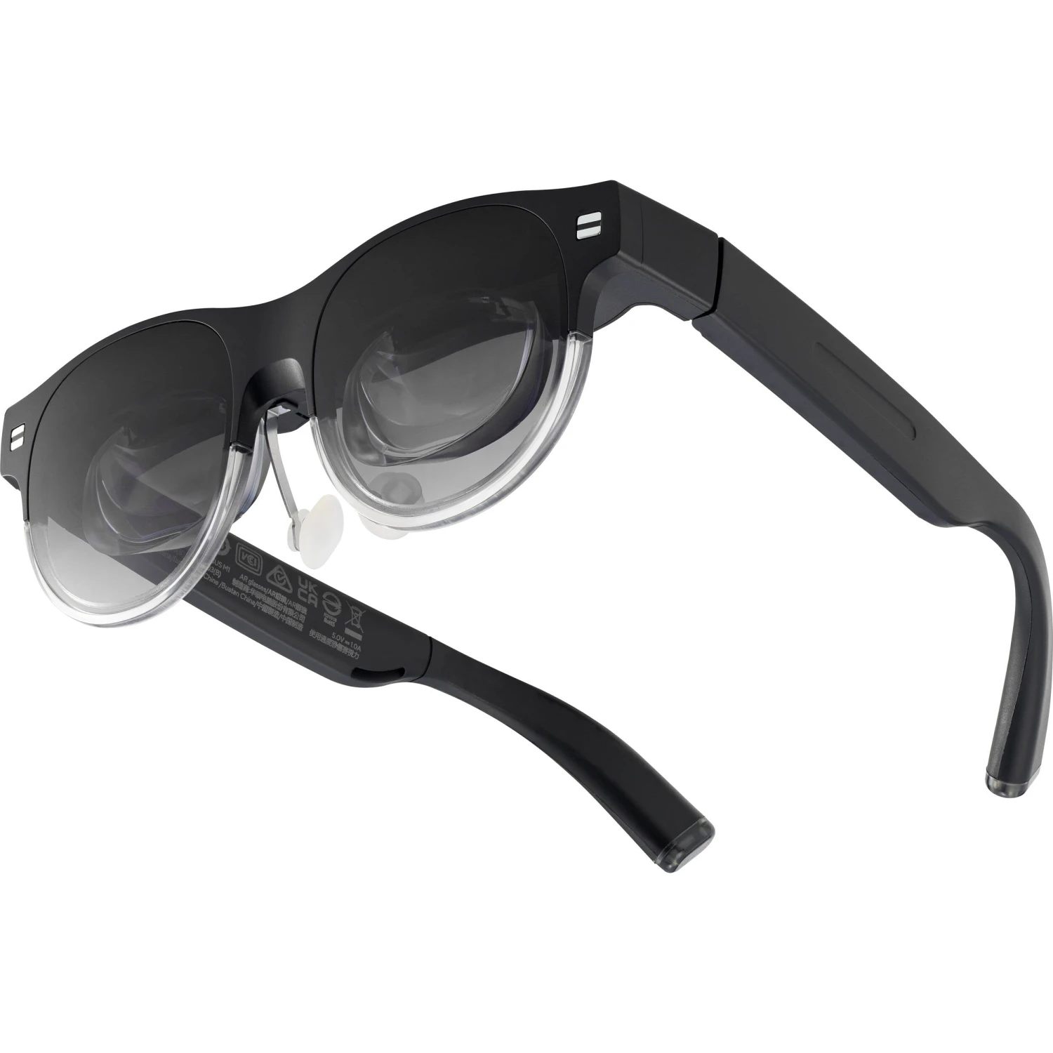 ASUS. Hook up the AirVision M1 glasses to your laptop, desktop, phone, or ROG Ally handheld gaming device via USB-C and enjoy a virtual display of up to 100″ in size. A brilliant 1100 nits of brightness and a 95% DCI-P3 wide color gamut deliver lifelike visuals. After setting up the AirVision app, keep that huge screen for an epic gaming session or movie night, or create multiple displays of various shapes and sizes, placing them all around you to create a custom virtual work environment. At only 3 oz, you can easily wear the AirVision M1 Smart Glasses for long periods, and with a 60% optical transparency, you’re still connected with the outside world.