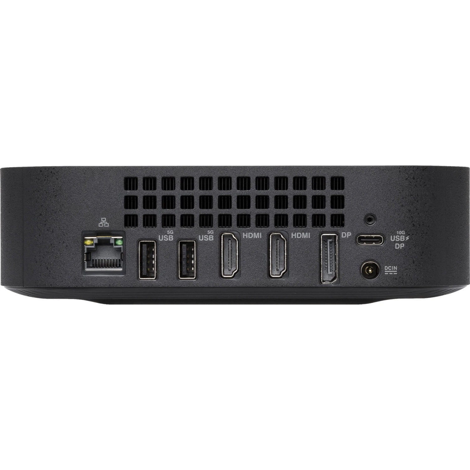 The front panel includes one 10 Gb/s USB-A 3.2 Gen 2 port alongside three USB-A 3.2 Gen 1 ports for 5 Gb/s compatible devices. There is also a convenient microSD card reader. On the rear are two USB-A and one USB-C 3.2 Gen 2 ports. You can enhance your multitasking by connecting up to four 4K displays through the two HDMI, one DisplayPort, and USB-C ports. Wi-Fi 6E support and the Gigabit Ethernet port allow you to connect to high-speed networks. Measuring 6.6 x 6.5 x 1.8″ with an included VESA mount, you can place the Chromebox 5a almost anywhere, including on a wall or the underside of a desktop. The Chrome OS operating system is preinstalled.