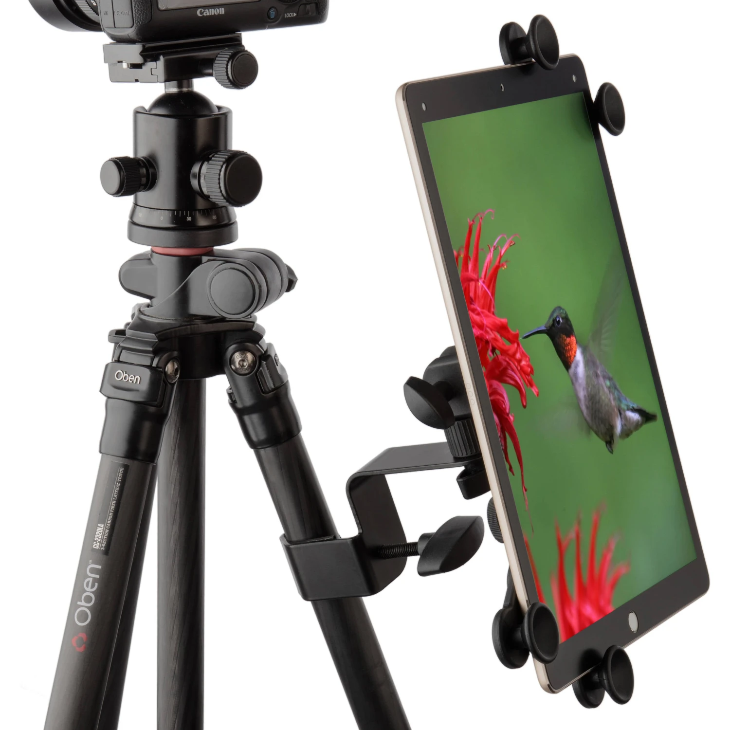 Mount your tablet on a desktop with the Auray IPU-108 Universal Tablet Stand Adapter Kit , bundled together by B&H for your convenience. The kit includes the aformentioned tablet stand adapter, which can hold your tablet, so you can read it without using your hands. The stand adapter supports tablets measuring 7 to 14″.