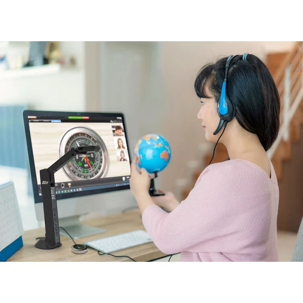 AVer. This compact document camera is designed as a flexible solution for educators and students. It captures and outputs up to 1080p60 video and allows up to 20x digital zoom to focus on any part of the image. The plug-and-play M11-8M can be connected to your macOS or Windows computer using the included USB cable, and the HDMI output allows you to connect the camera to a monitor, projector, or TV.