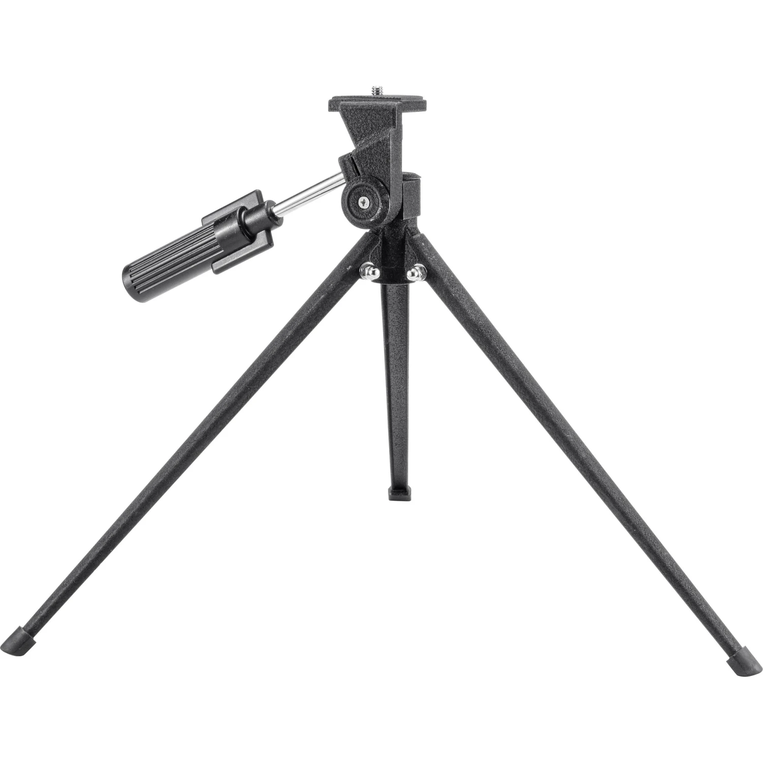Put your binocular, spotting scope, or camera on a stable platform with Barska’s Table Top Tripod. Outfitted with a standard 1/4″-20 mounting bolt on its pan/tilt head, you can lock your device in the right position with a simple twist of the handle. Its wide leg spread helps to mitigate vibrations and the slip-resistant rubber feet keep it in-place. When set up, the tripod is 10″ tall, and folds to a compact 13″ long to easily fit in many packs.