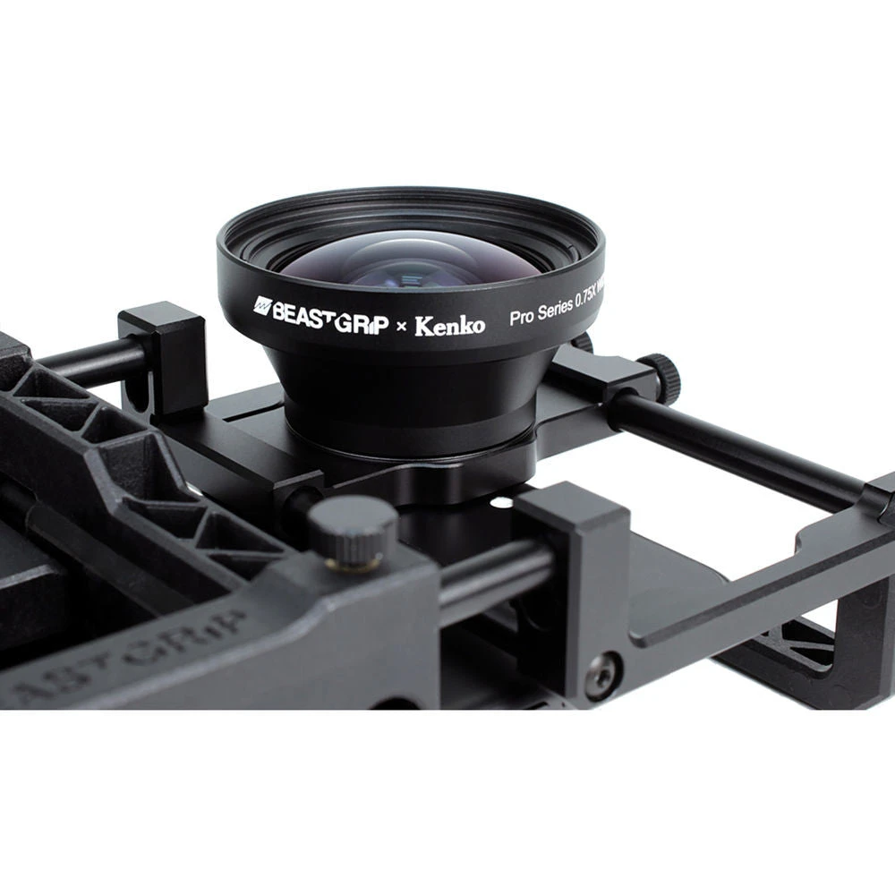 Enhance your smartphone photography with the Beastgrip x Kenko Pro Series 0.75x Wide-Angle Smartphone Lens . This wide-angle lens is designed for use with high-resolution smartphone cameras recording video at up to 4K with minimized distortion and chromatic aberrations. Developed in concert with lens manufacturer Kenko Tokina Co., Ltd., the lens provides a 25% wider field of view than your smartphone camera alone for a wider, “zoomed-out” image that’s sharp from edge to edge.