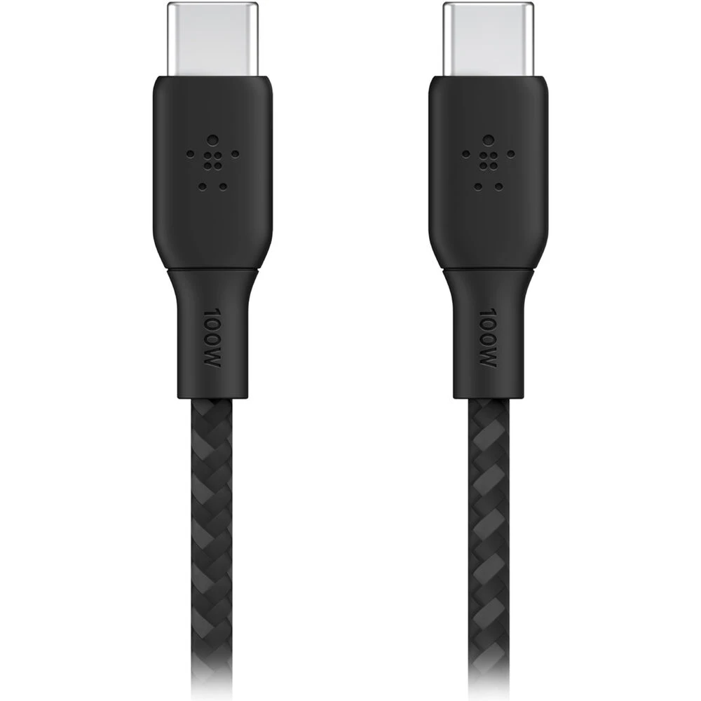 The black, 10′ Belkin BoostCharge Braided USB-C Cable allows you to power and connect to a MacBook, Chromebook, Windows laptop, iPad, or other USB-C device. This double-braided cable is tested to survive over 30,000 bends. It’s compatible with USB-C PD to support up to 100W charging, delivering safe and optimal charging speeds for a variety of devices. Additionally, with USB 2.0 connectivity, you get data transfer speeds of 480 MB/s.