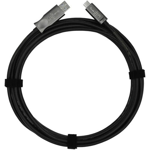 Securely connect to peripherals over long distances with the 65.6′ USB 3.1 Gen 2 Type-A to C Fiber Optic Extension Cable. Designed for use with peripherals such as cameras and microphones, this cable features USB Type-A male host and Type-C male source connectors. The USB 3.1 Gen 2 interface supports transfer rates up to 10 Gb/s. Plus, fiber optic cabling and Kevlar threading ensure durability. Supporting both UVC camera and UAC audio, this cable features an auto-clock manager (ACM), ensuring clock data integrity over long distances.