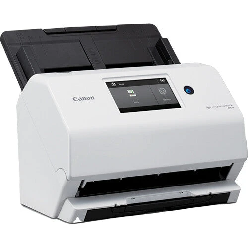 The imageFORMULA R50 Office Document Scanner from Canon is simple to set up and easy to use. Designed for desktop use, it features a large color touchscreen to easily select scan destinations and access settings and shortcuts, and you can connect to your computer using the included Superspeed+ USB cable or through a Wi-Fi network. A 60-sheet automatic feeder automatically accepts documents up to 8.5 x 14″, and a long document scanning mode enables scan sizes up to 8.5 x 118″. For letter-size documents the scanner has a fast simplex scan speed of 40 ppm, and duplex scan speeds are an equally impressive 80 ipm.