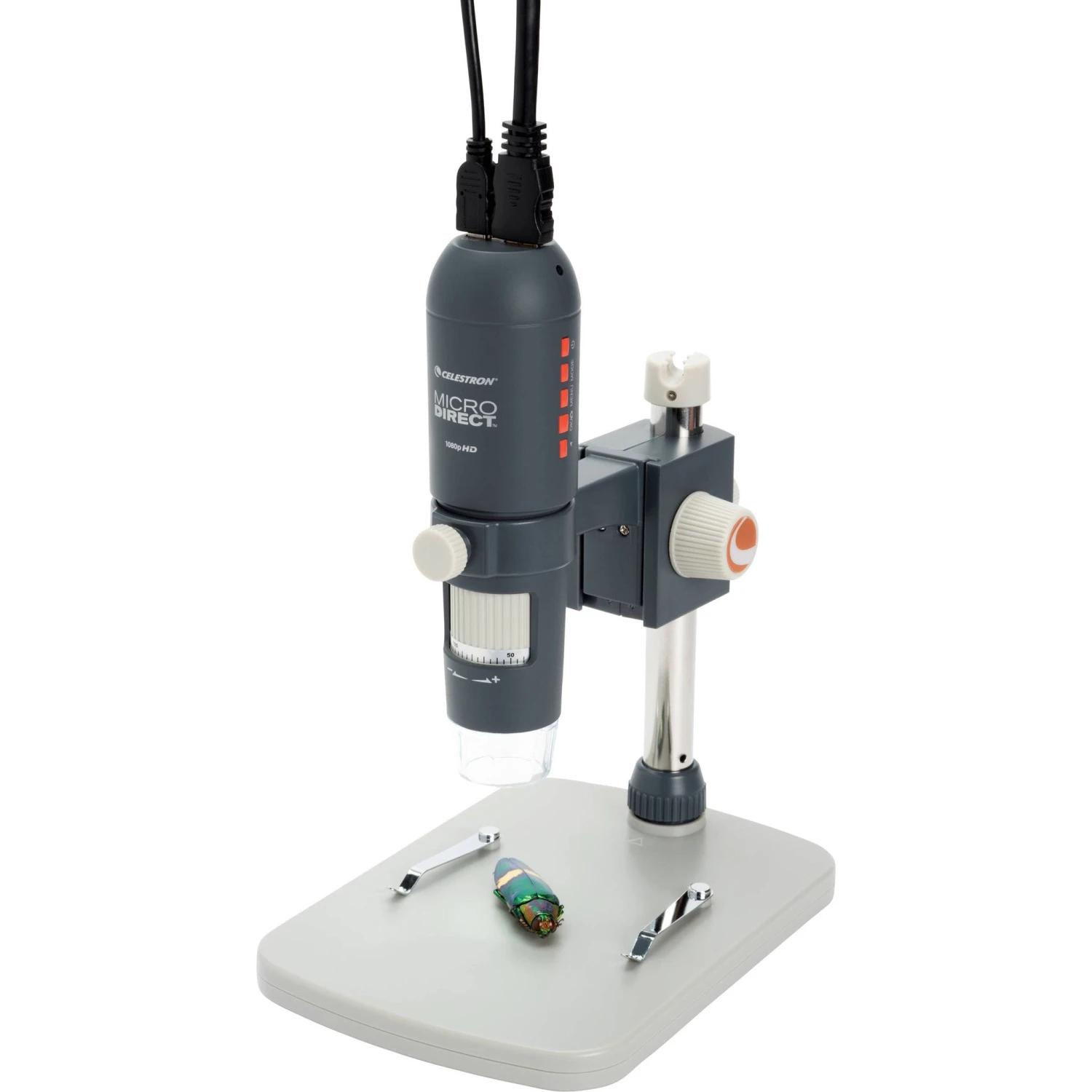 Celestron’s MicroDirect 1080P HDMI Handheld Digital Microscope is a compact magnifying tool that offers handheld and stand-mounted operating options. Using the included wide stand, you can adjust and secure a working distance and horizontal position above your sample. The base also provides two clips to hold your slides or flat samples. With its high-resolution 3.5MP imaging sensor and an LED illumination ring, you can capture bright and crisp images and 30 fps videos. Optimized for 3D examinations, this kit also can be useful to study miniature artifacts by bumping up the magnification power to 220x on a 20″ monitor. The device also provides options for streaming videos out via its mini-USB or mini-HDMI ports, saving your visual data to a 32GB microSD slot, and controlling shutter speeds manually or through your PC.