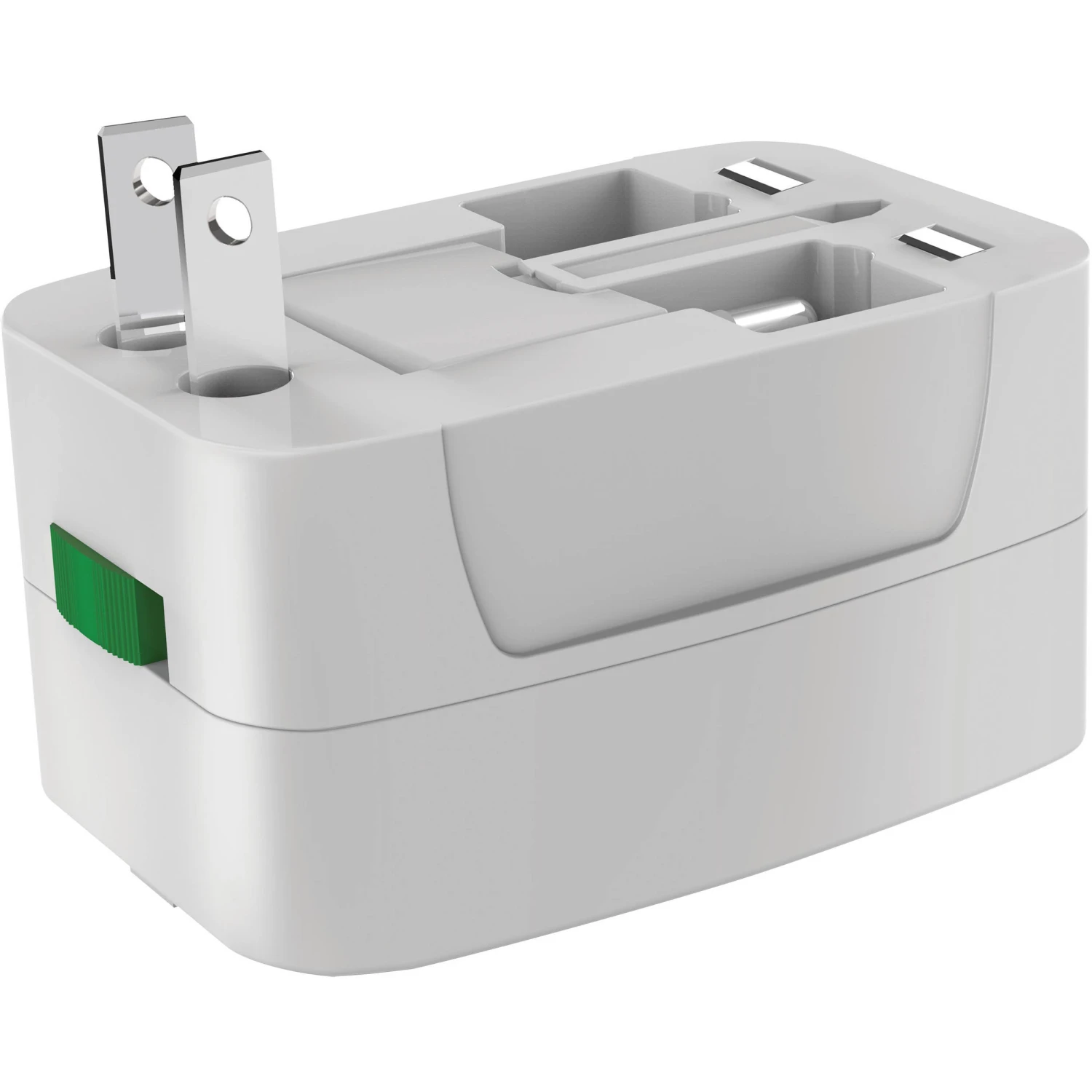 The ChargeWorx International Travel Adapter is a compact and easy-to-carry universal travel power adapter that provides worldwide compatibility with surge protection. This all-in-one adapter works in over 150 countries with a max capacity up to 250 VAC at 10A. It features built-in surge protection and an LED status indicator. This adapter includes built-in plugs for connection to outlets in the US, Australia, the UK, and most other countries in Europe.