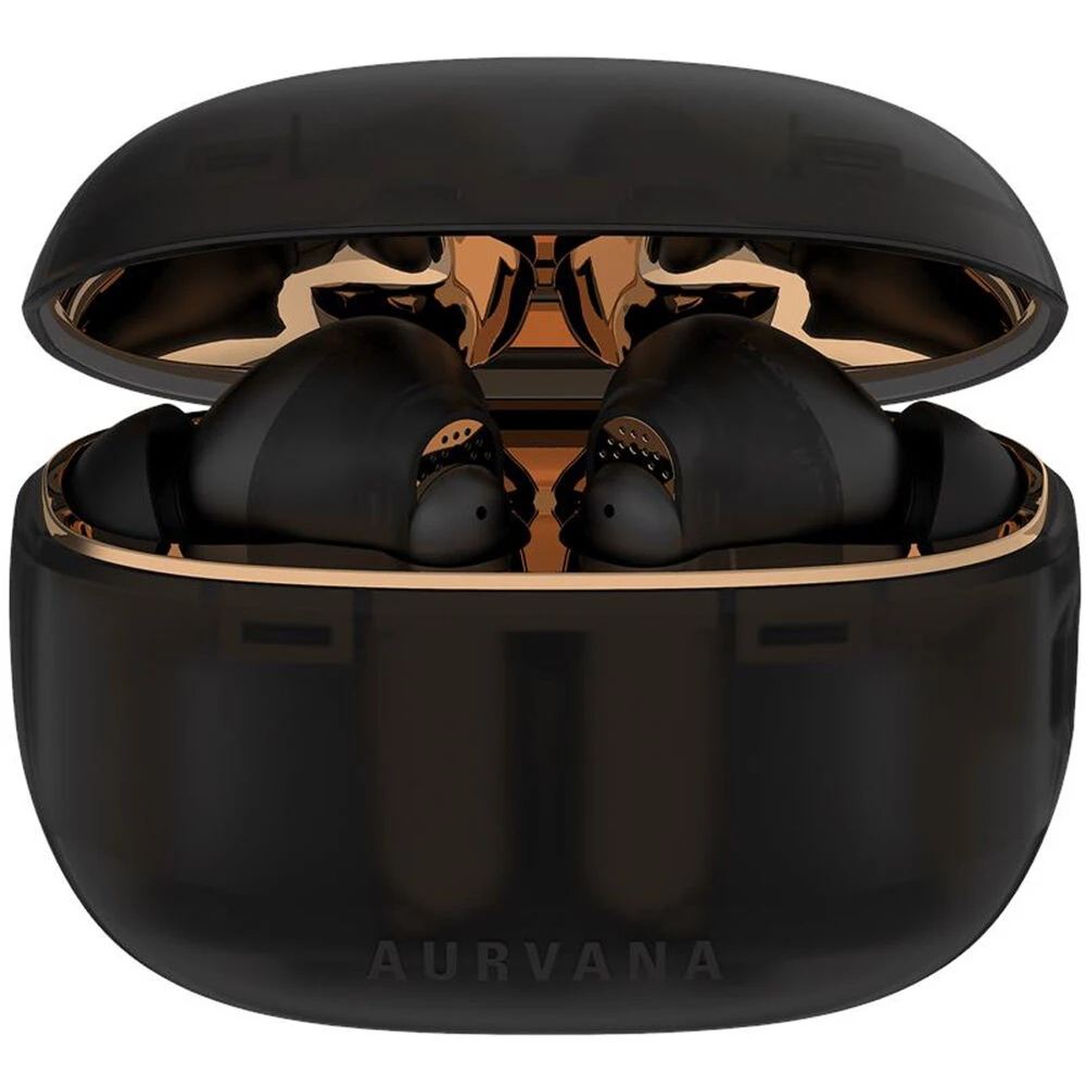 Six onboard mics work with Qualcomm cVc (Clear Voice Capture) technology to provide crystal-clear communication over the phone. Each earbud is extremely lightweight and can be operated with intuitive touch controls. The compact charging case offers up to 24 hours of playback and supports both rapid USB-C charging and wireless Qi charging. An IPX5 rating ensures solid protection from light water sprays and sweat, making the Aurvana Ace 2 an ideal choice for intensive workouts, long runs, or hiking. The Aurvana Ace 2 includes the wireless charging case, a USB-C charging cable, and three pairs of silicone eartips in small, medium, and large sizes.