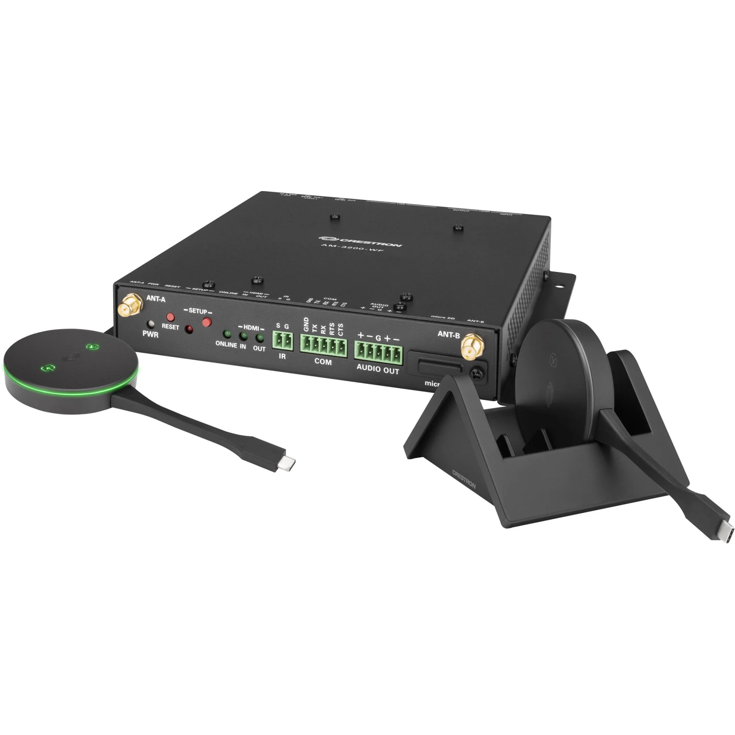 The Crestron AirMedia Series 3 Kit enables secure wireless collaboration in the modern digital workspace. This kit is easy to deploy and manage, and it can be installed in huddle rooms, lounges, lobbies, or almost any space to establish a productive meeting environment. The system contains an AirMedia Series 3 Receiver, two AirMedia Connect Adapters, and a tabletop cradle for up to four AM-TX3-100 adapters. The kit supports Supports content sharing of four simultaneous sources for multi-user collaboration with AirMedia Canvas.