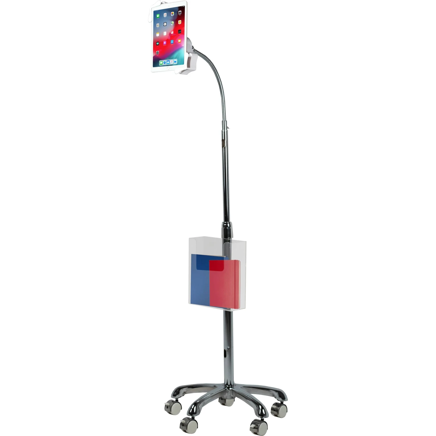 Display brochures and flyers on your compatible tablet stand with the Brochure Holder Add-On for Tablet Floor Stands from CTA Digital . Designed for select CTA Digital tablet floor stands, this brochure holder is made of durable transparent plastic, and it can hold up to 10 lb of paperwork, folders, documents, or other material. A pole grip secures the document holder to the central pole of your compatible tablet stand. The document holder add-on is ideal for trade shows, waiting rooms, offices, and other public venues.