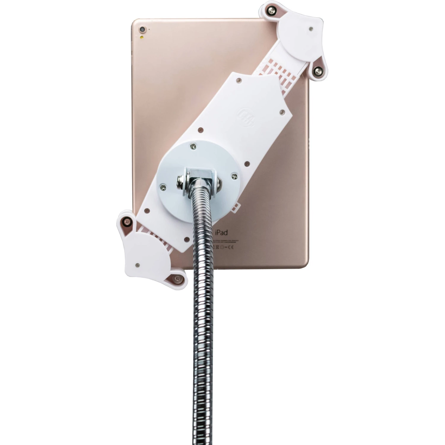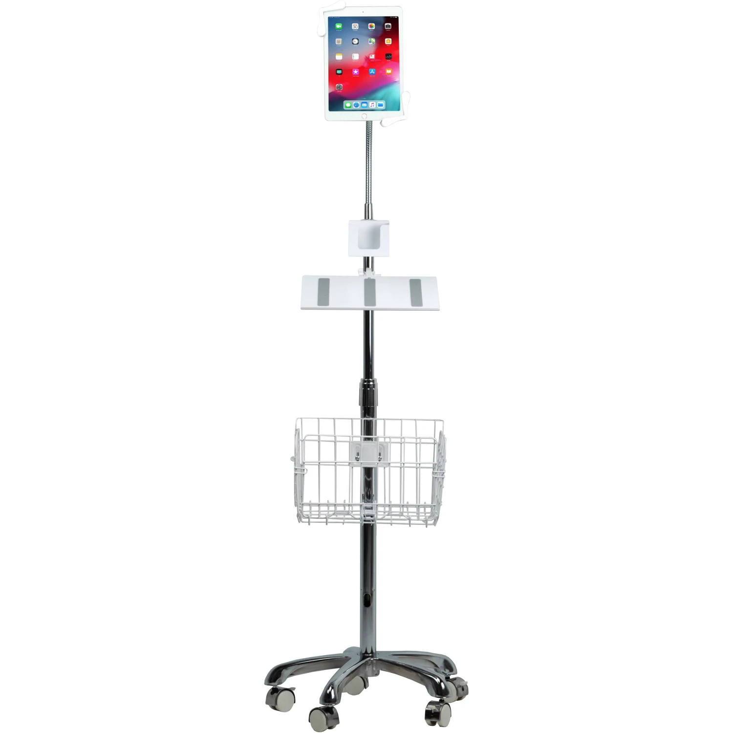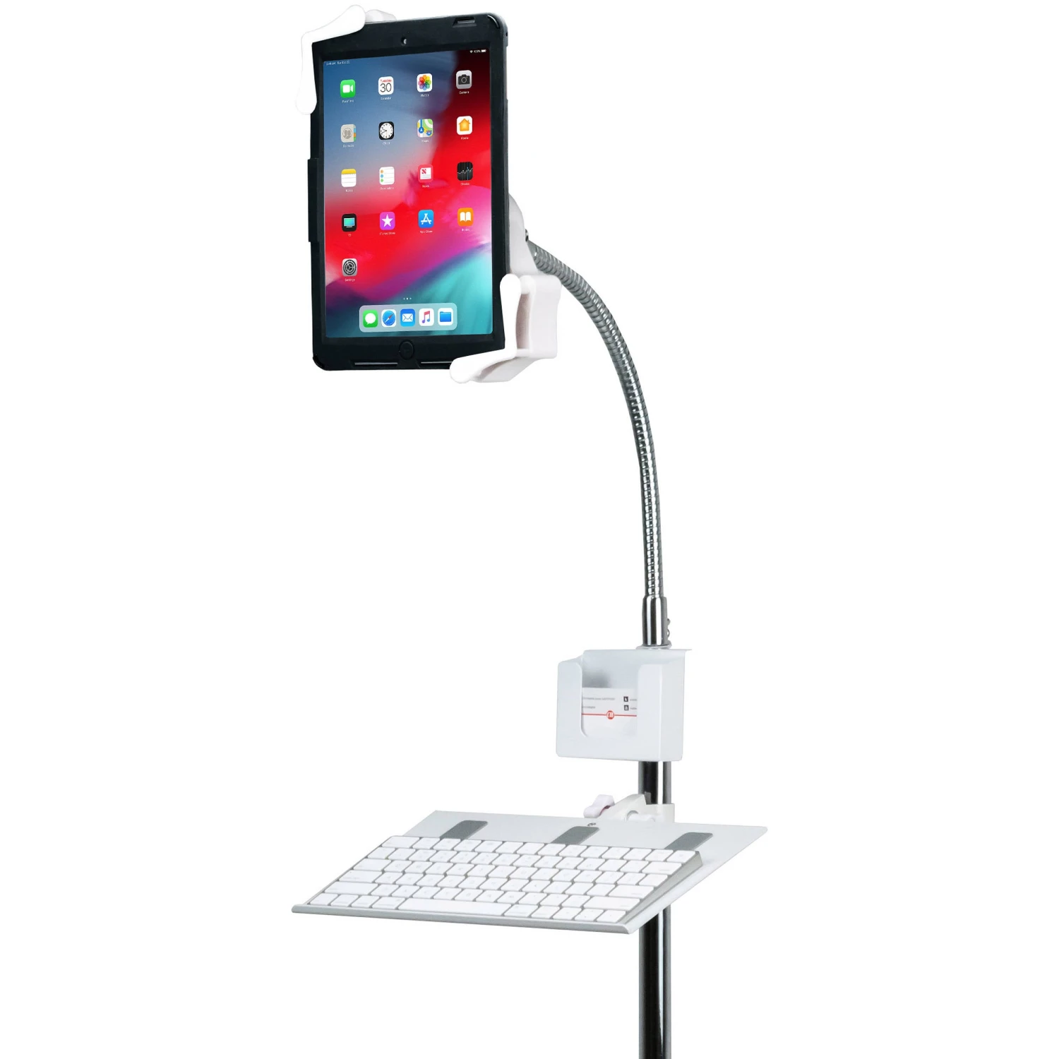 The Gooseneck Tablet Floor Stand with Storage Basket from CTA Digital gives you the ability to have app and internet access almost anywhere, without having to carry or hold your tablet. Your tablet attaches to the stand via the included holder or an (optional) VESA-compatible tablet case. Once installed, five locking caster wheels and multiple adjustments let you move and position your tablet almost anywhere. Included accessories add further functionality with additional storage and space for a keyboard.
