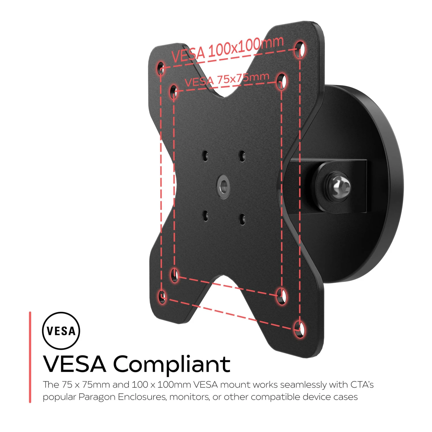 Consisting of two parts, the Paragon tablet holder secures your device within a lockable steel enclosure, preventing theft and unauthorized use of controls. You can ensure your device is always charged with the dedicated cable routing area that keeps outsiders from unplugging your device. The magnetic base allows you to set the entire unit to any iron or steel surface. Both components are VESA compatible, supporting various mounts and cases, allowing you to utilize additional CTA Digital devices if needed.