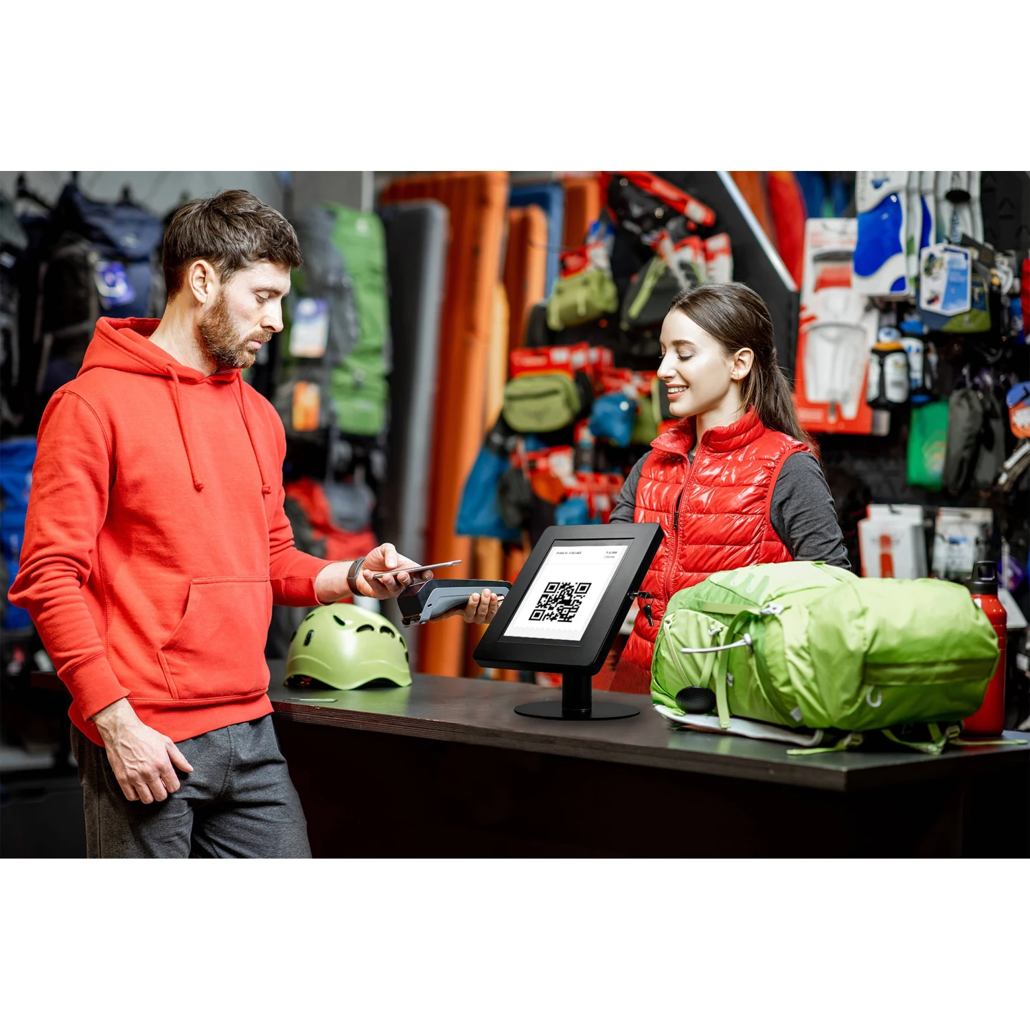 Conveniently display your tablet while keeping it safe with the black CTA Digital Hyperflex Security Kiosk Stand . Your device is protected from everyday damage thanks to this enclosure’s heavy-duty aluminum exterior. Moreover, this enclosure features soft rubber grips on its interior, which keeps your tablet snug and scratch-free. You also get convenient interactions between multiple people with two 360° swivels�one at the base and the other at the mount.