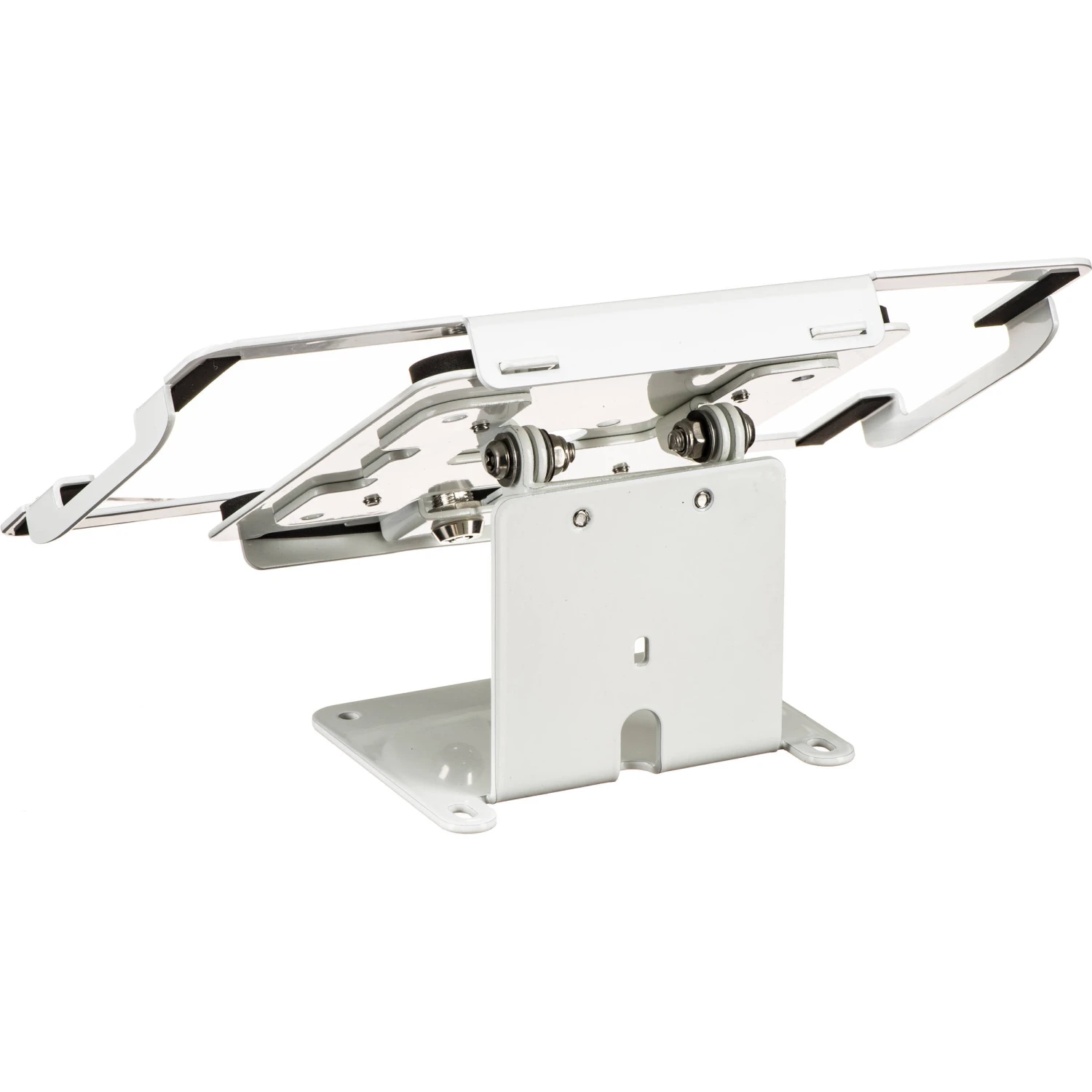 With the included mounting hardware or adhesive silicone pads (not included) you are able to attach this stand to desk, countertop, or a flat surface. For extra security, the included steel cable can be anchored to any permanent fixture, so your tablet stays put.