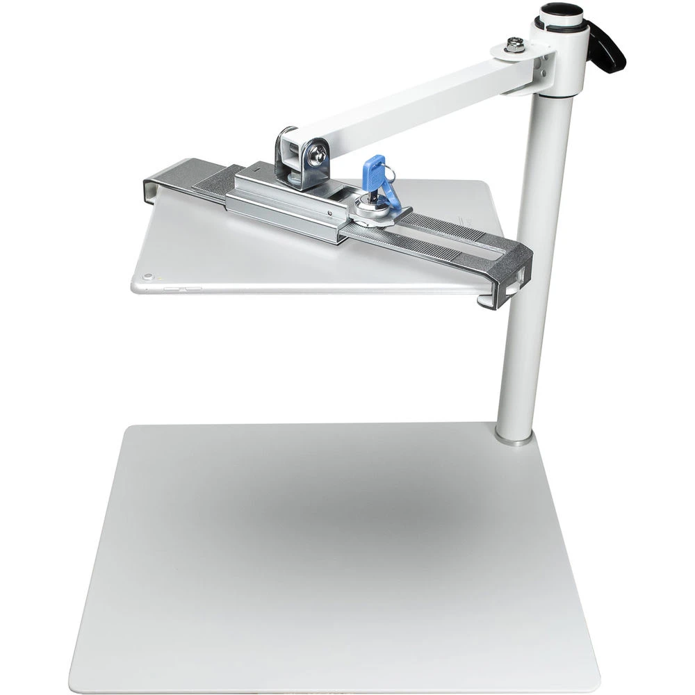 The Portable Projector Stage & Photo Studio Security Mount for 7-14″ Tablets from CTA Digital is engineered to let you easily take top-down images with your tablet. The lockable tablet holder and its swing arm are attached to a vertical pole. The arm can be adjusted in height to take close-up macro shots, or images up to 16″ away. The tablet holder can be securely locked into place to protect your tablet from theft and is made to accommodate most 7-14″ screen tablets. The built-in foam pad works with tablets in cases up to 1.06″ thick. The smooth, anti-reflective 15.5 x 13″ white base provides you with a neutral backdrop for your pictures.