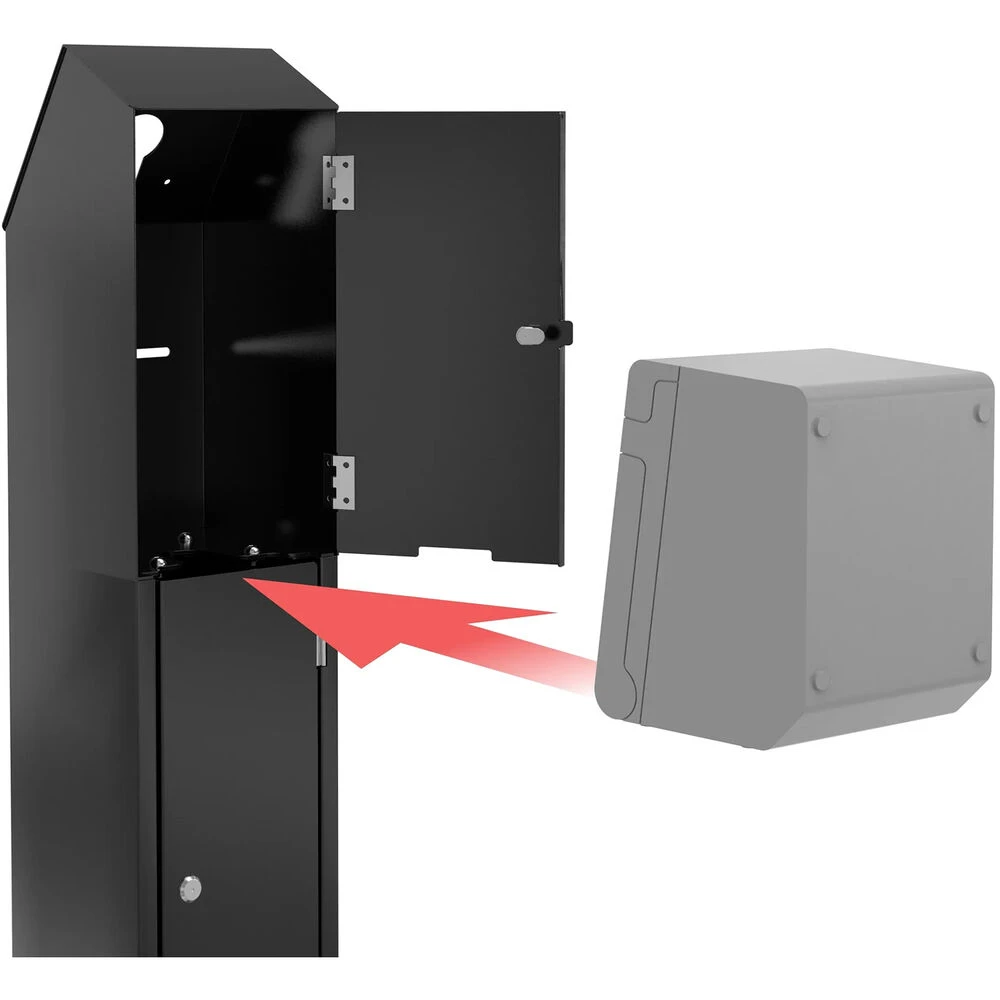 The Premium Locking Floor Stand Kiosk with Enclosed Printer Storage & Cable Management from CTA Digital is ideal for food service ordering, retail point of sale, service counters, and hospitality desks. Its metal design contains three storage compartments each with their own locking doors, and a top unit with a locking printer shelf. A rugged universal enclosure attaches to the kiosk via VESA-plate. It protects tablets from theft with a powerful lock and key security system and can be mounted either vertically or horizontally.