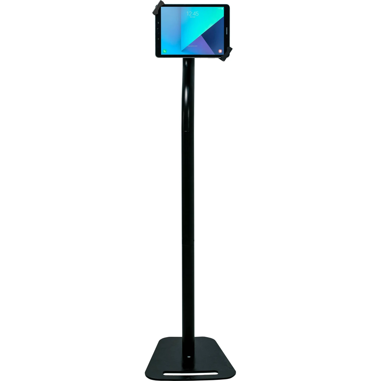 Display your compatible tablet in a secure lockable stand with the Premium Security Swan Neck Stand for 7-14″ Tablets from CTA Digital. Designed to fit most 7-14″ tablets, the 45″-tall stand features a slide-adjustable tablet holder that’s secured by a keyed lock. The holder tilts 180° and rotates 360°, ideal for portrait and landscape views, and it also offers full access to your tablet’s ports and summarys. The hollow interior of the stand allows for hiding charging cables, while the weighted base boasts slip- and scratch-resistant padding. You can lower the stand to desk height by removing the middle section of the swan neck.