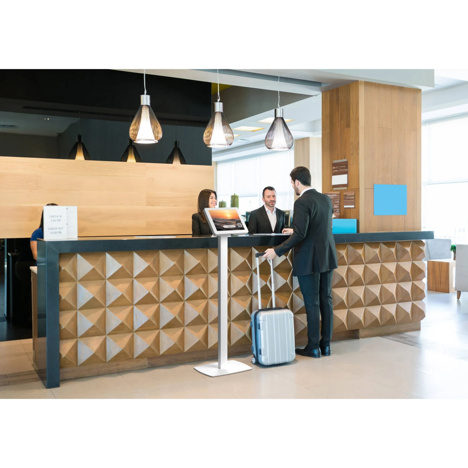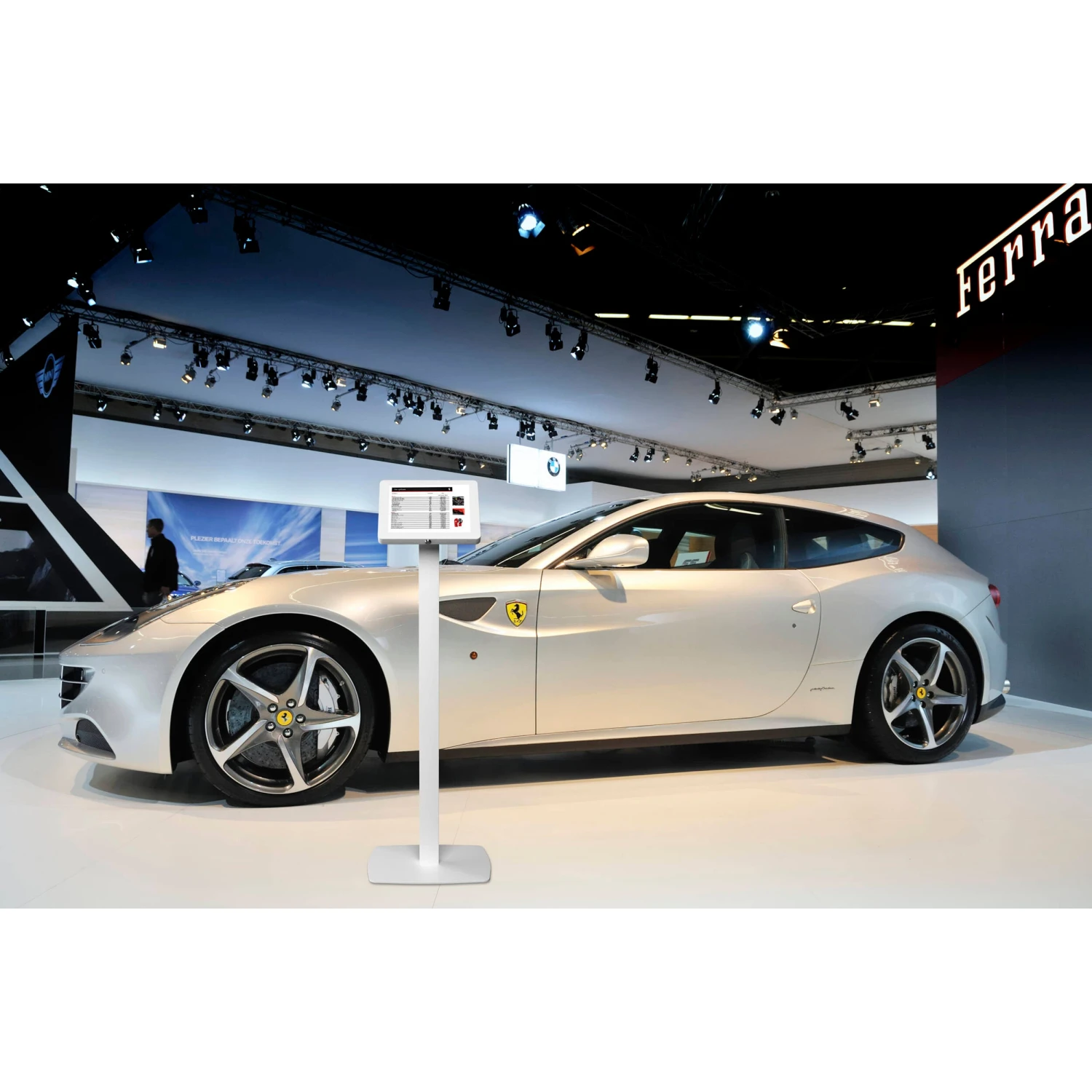 Keep information accessible and safe with the white Premium Thin Profile Floor Stand from CTA Digital . Featuring a key-locking tablet enclosure with 360° rotation, this stand can display your tablet in landscape or portrait orientation. This holder also preserves full access to the home summary and camera. Standing 45″ tall, the Premium Thin Profile Floor Stand incorporates an internal cable routing system. A padded base also prevents scratched floors.