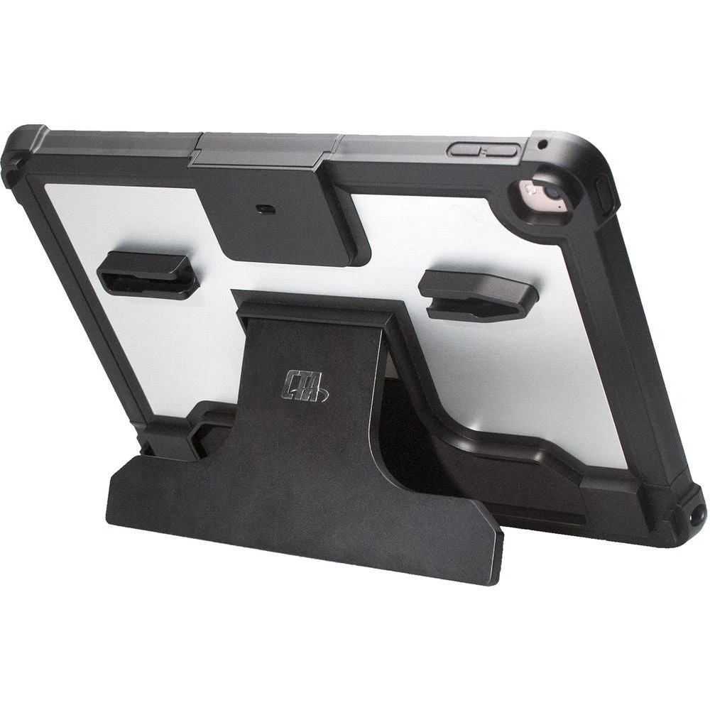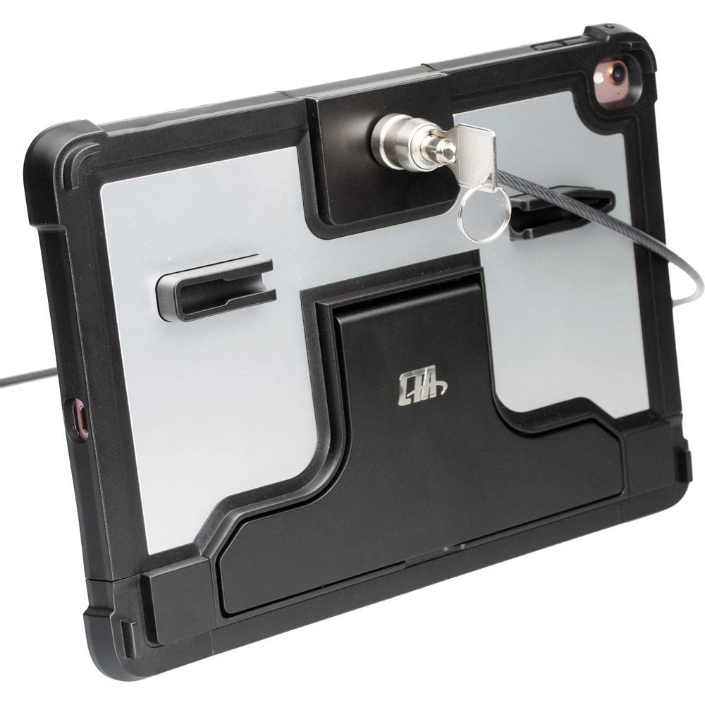 Designed with portability in mind, the Security Case with Kickstand and Anti-Theft Cable from CTA Digital will help protect your 9.7″ iPad Pro and iPad Air from theft, while retaining portability and functionality. Well suited for use in conference rooms, classrooms, restaurants, and doctor’s offices, this case features nano composite cooling pads to help reduce heat, a built-in folding kickstand for tabletop setup, plus openings to ensure easy access to all cameras, ports, and jacks. The rear of the case also features an integrated holder designed for your Apple Pencil or other stylus, and the K-slot style galvanized steel anti-theft cable helps deter theft by attaching to most permanent fixtures, unlocking with the included keys. Also included are an attachable padded handgrip, an adjustable shoulder strap, and a credit card reader adapter.