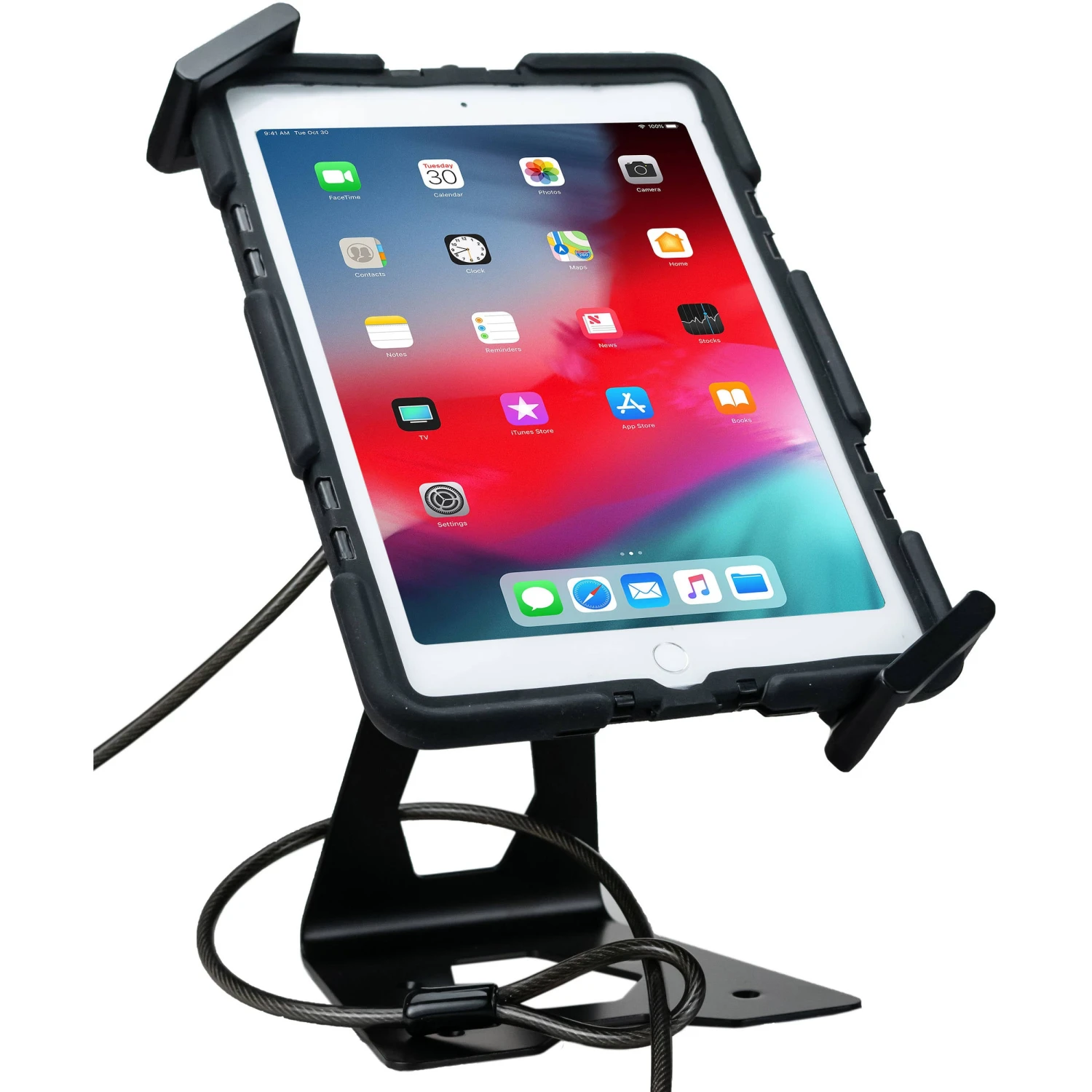 Enjoy convenient desktop, tabletop, or countertop tablet mounting with the CTA Digital Security Stand. It provides tilt adjustment and 360° rotation of your tablet to achieve landscape and portrait rotation for enhanced versatility. The base can be screwed onto your installation surface or secured to a nearby structure with the included 70″ security cable. This mount supports a variety of tablets with 7 to 13″ screens, including the Apple iPad 7 10.2″.