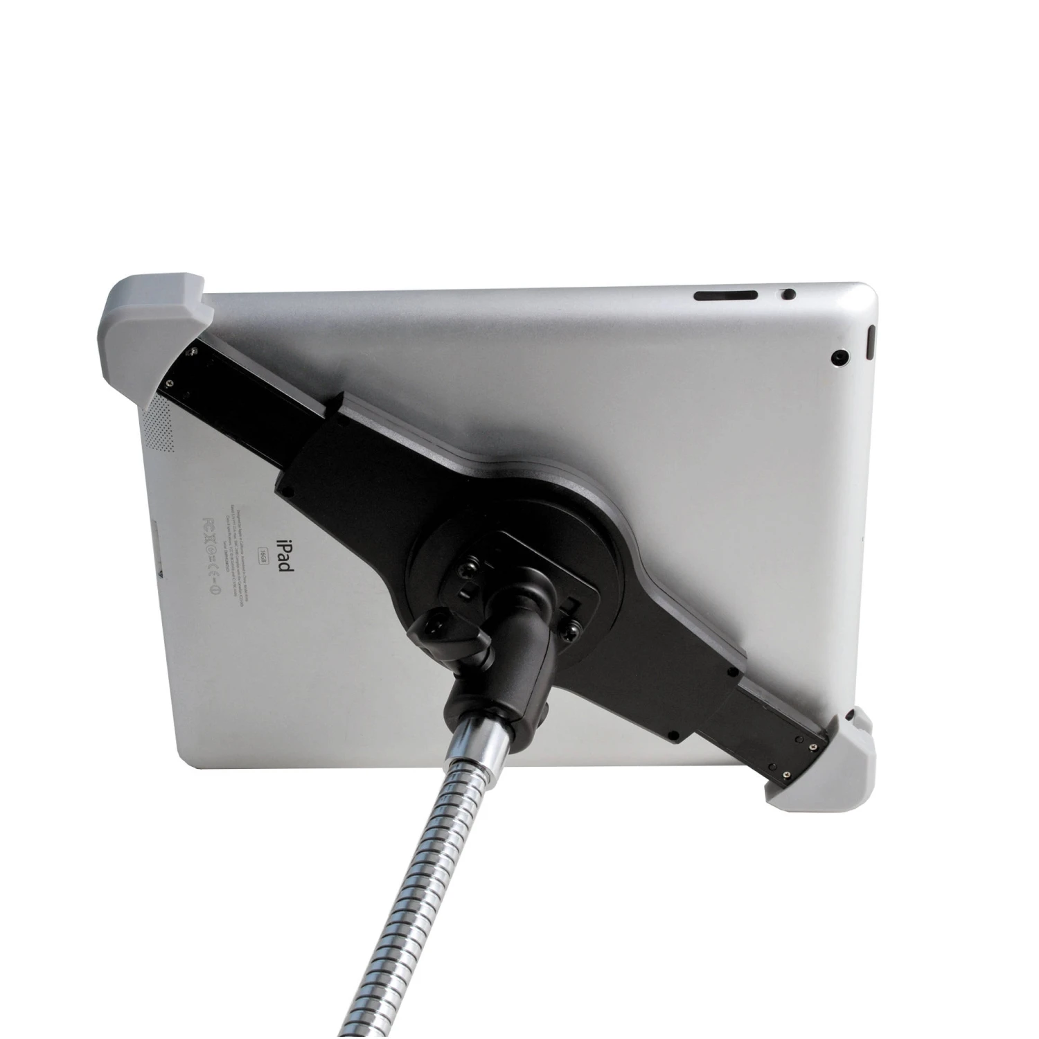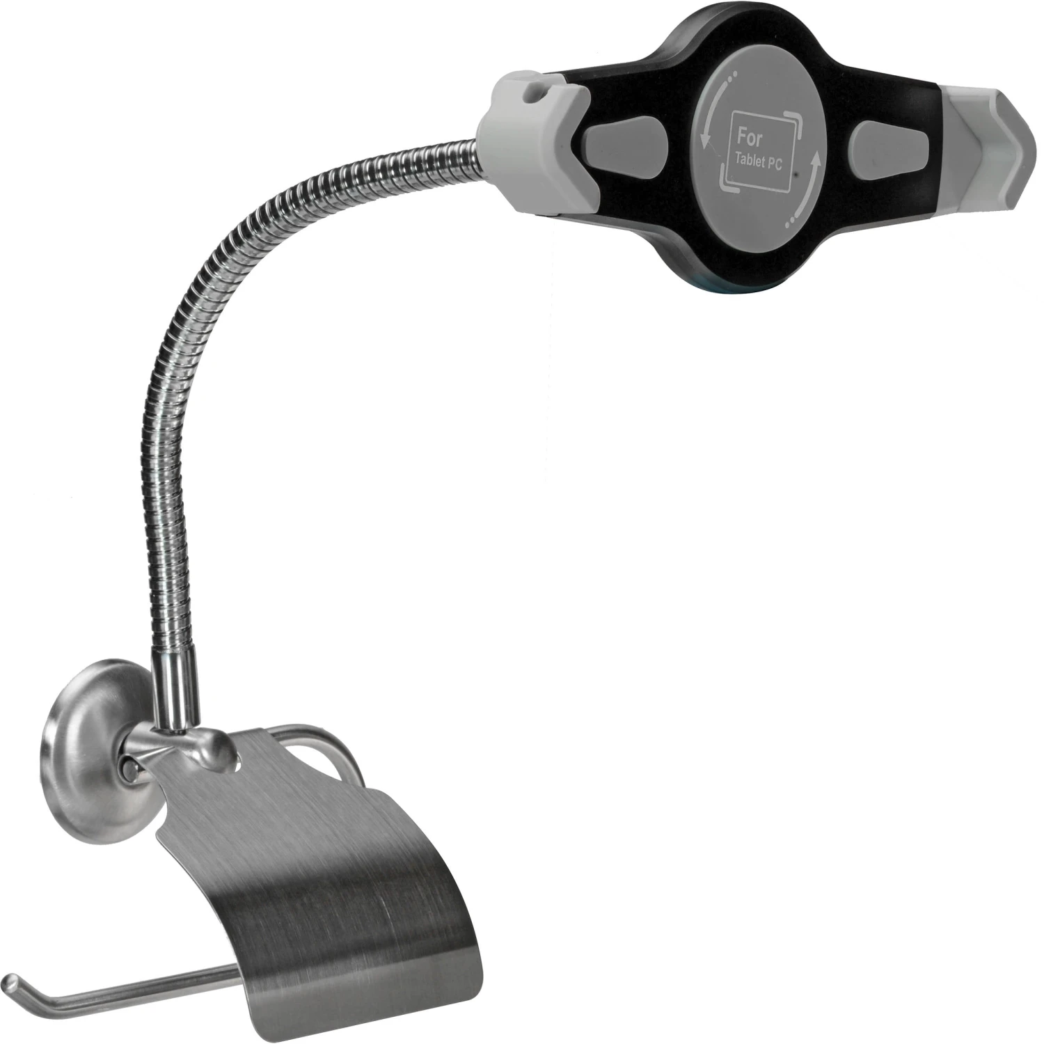The Wall Mount Bathroom Stand with Paper Holder for iPad & Tablets from CTA Digital provides a convenient way to comfortably use apps, watch videos, and browse the web at home. This bathroom accessory is adjustable with a universal tablet holder that securely fits the iPad Air, iPad Mini, iPad (2nd to 4th generation), and most other 7 to 10″ tablets. The holder can rotate 360° and adjust to any viewing angle, orientation, or position needed with the flexible 11.5″ metal gooseneck stand. The tablet stand is built into a single post toilet paper holder with a cover and is easily wall mountable with the included hardware.