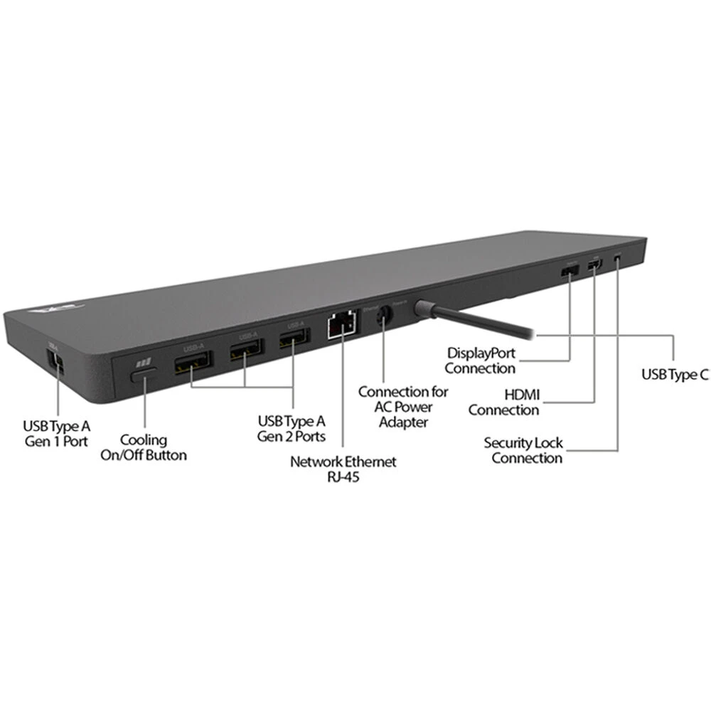 Organize your workspace with the Cyber Acoustics Essential DS-2000 USB 3.1 Gen 2 Type-C Docking Station, which supports dual monitors and is compatible with notebooks that have USB Type-C or Thunderbolt 3 ports. Designed with integrated active cooling and optimized resting angle for your laptop to create an organized workspace with improved laptop performance.