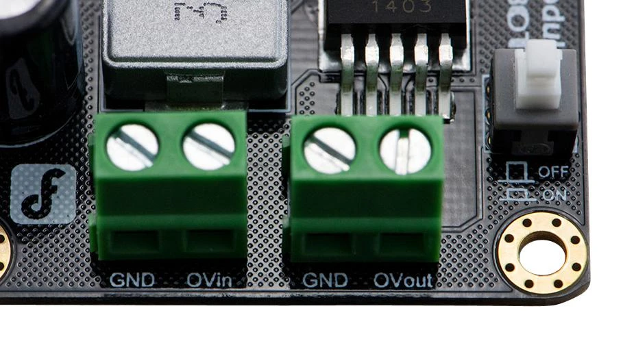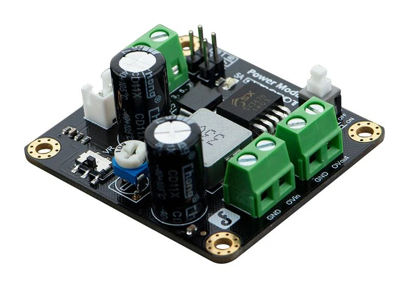 DC-DC power module is a small size 5A 350KHz 25V Buck DC to DC Converter. It can convert any DC voltage between 3.6V-25V to a selectable voltage from 3.3V to 25V.