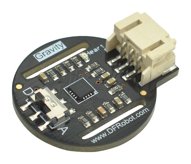Gravity heart rate monitor sensor for Arduino is a thumb sized heart rate monitor designed for Arduino microcontrollers. This heart rate monitor sensor is a pulse sensor which is developed based on PPG techniques. This is a simple and low cost optical technique that can be used to detect blood volume changing in the microvascular bed of tissues. It is relatively easy to detect the pulsatile component of the cardiac cycle according to this theory. The sensor has two holes that you can use to attach to your belt. Users can wrap on their finger, wrist, earlobe or other areas where it has contact with your skin. A Gravity Interface is adapted to allow plug&play to ease the barrier of usage. The IO sensor shield is the best option to connect this heart rate sensor with your Arduino or other microcontrollers. Besides, this sensor can also be compatible with Raspberry Pi, intel edison, joule and curie by means of 3.3V input voltage.