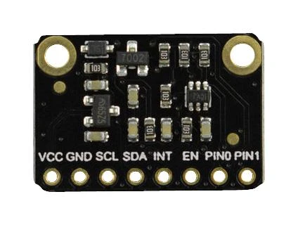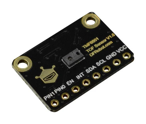 SEN0430 is a Fermion: TMF8801 ToF Distance Ranging Sensor (20-2500mm) (Breakout). The TMF8801 is a time-of-flight distance ranging sensor that uses the time difference between light pulses to measure distance. It provides single zone detection of an object irrespective of the colour, reflectivity and texture of the object. The TMF8801 offers high dynamic range and detection sensing measurements from 2-250cm distances. The device can make highly accurate distance measurements within ±5% and is capable of operation in dark environments and in the presence of sunlight. A built-in histogram is featured to delivers dynamic cover glass calibration and crosstalk compensation and background light noise is minimized through on-chip sunlight rejection filters. The TMF8801 outputs data through a I2C fast-mode communications interface and an integrated micro controller, which is featured with all algorithms included on-chip with no need for external optics.