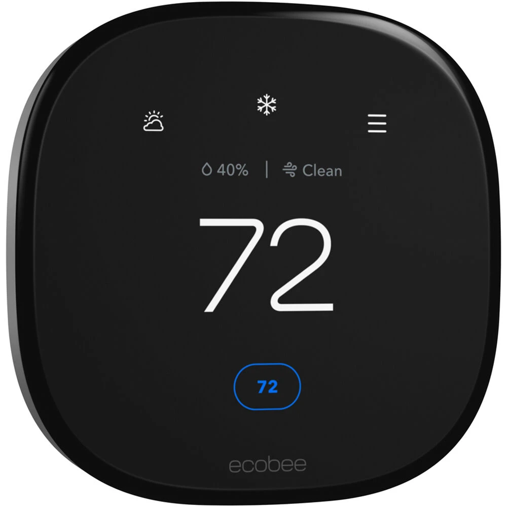 Implement energy-saving temperature control in your home with the Smart Thermostat Premium from ecobee. Compatible with most HVAC systems, this unit features a 4″ LCD touchscreen display, dual-band Wi-Fi and Bluetooth 5.0 connectivity as well as automatic temperature and humidity adjustments to maximize savings and comfort. A SmartSensor is included for temperature maintenance and occupancy detection in your home. Additionally, with a Smart Security subscription, this device functions as a monitoring hub with built-in smoke detection, pairs with ecobee smart sensors (available separately) to provide an additional layer of security, and prevents issues like frozen pipes.