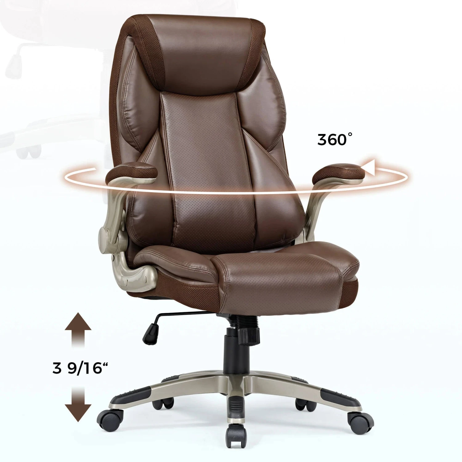 If you’re looking for elegant style and comfort, look no further than the brown Galene Faux Leather Office Chair from Eureka. This ergonomic chair features space-saving flip-up armrests, 360° swivel, breathable fabric, and an ergonomic seat design that keeps you cool and comfortable throughout the day.