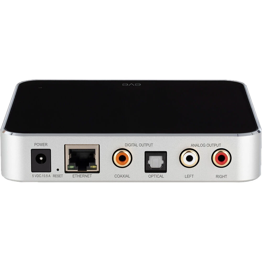 Eve Play Audio Streaming Device. Eve Play is a compact streamer that features digital and analog ports for connecting it to your existing amplifier, soundbar, or powered speakers. You can also create a multi-room setup by syncing it to optional AirPlay wireless speakers throughout your home using the Eve app with Audio Sync. Once setup, stream your favorite online services and playlists wirelessly using dual-band Wi-Fi, or wired via an Ethernet network connection.