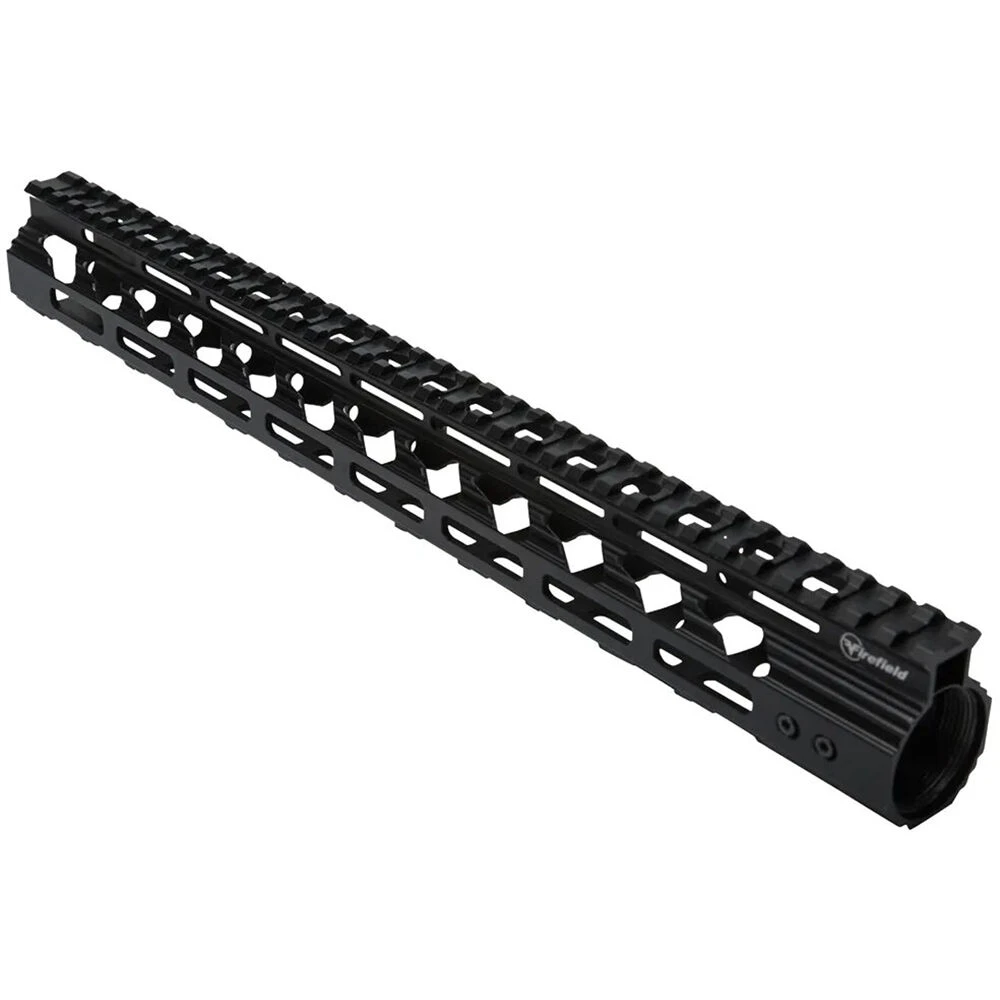 The Firefield Verge 15″ M-LOK Rail provides a way to mount lights, aiming lasers, optics, and night vision gear on your rifle, while providing a comfortable grip. The rail is made of lightweight, hard anodized 6061-T6 aluminum and features a Picatinny rail along the top, plus a separate 7-slot Picatinny rail that you can position as needed. An AR-15 armorer wrench and a torque wrench are required for installation; if these tools are not available, it is best to have the M-LOK rail installed by a gunsmith.