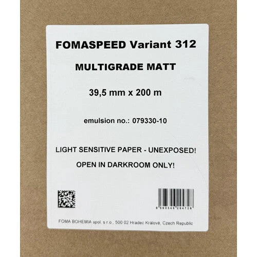 The 1.6 x 7.87″ Fomaspeed 312 VC RC Matte Photo Booth Paper from Foma features a very rich halftone scale ranging from shining whites to deep blacks. The paper is created using silver chlorobromide emulsion that gives it a neutral-to-medium-warm tone to the resulting silver image. It is a universal black-and-white photographic paper on a resin-coated (RC) paper base.