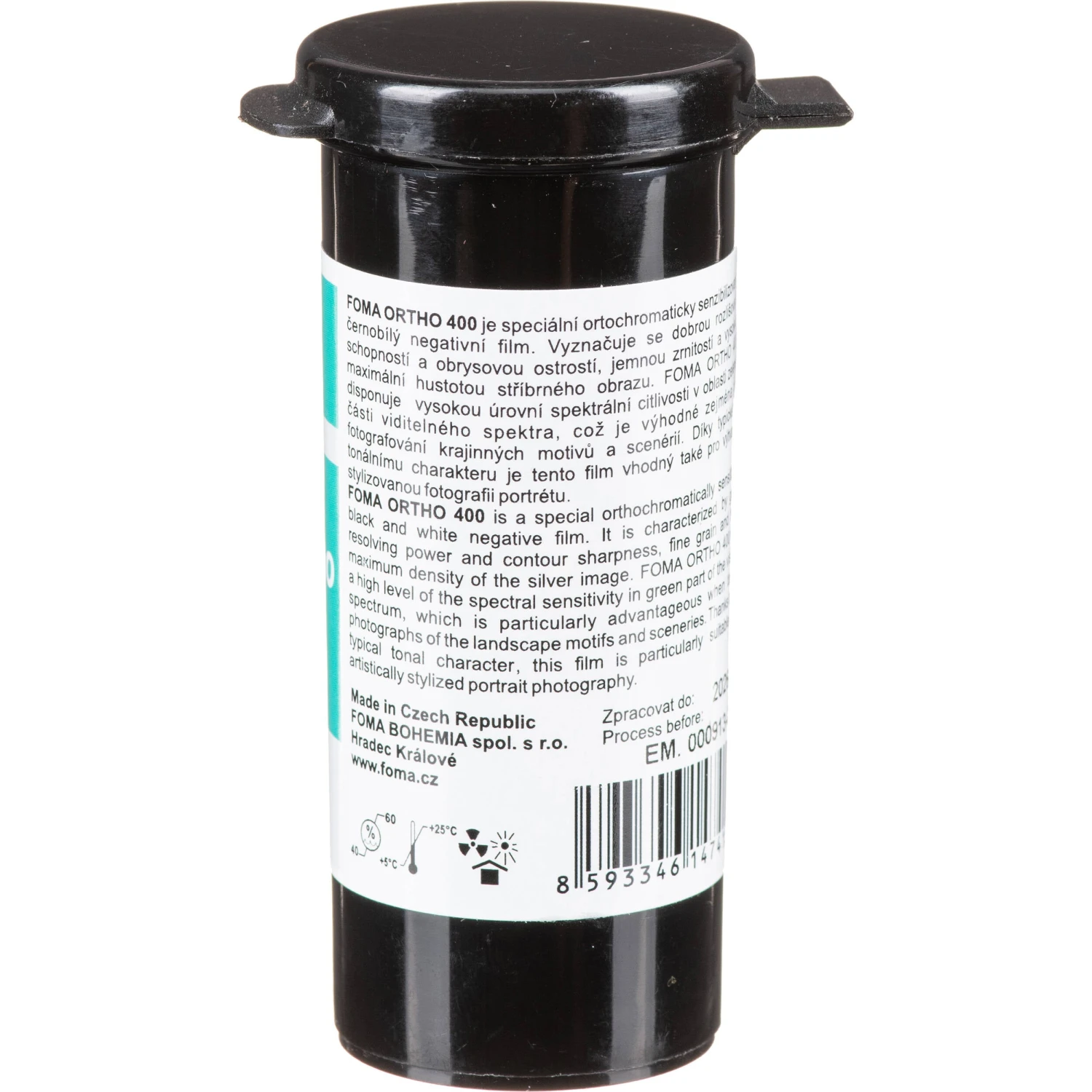 Foma Ortho 400 is a high-speed black and white negative orthochromatic film with a nominal sensitivity of ISO 400/27° and is characterized by its sharpness and fine grain. It is well-suited for artistically stylized portrait photography and features a high level of spectral sensitivity in the green part of the visible spectrum, which is advantageous when capturing landscape sceneries. Foma Ortho 400 can be developed in standard black and white chemistry and features no anti-halation layer.