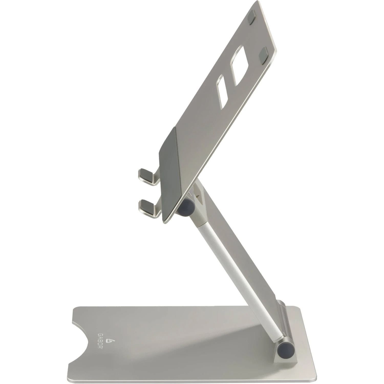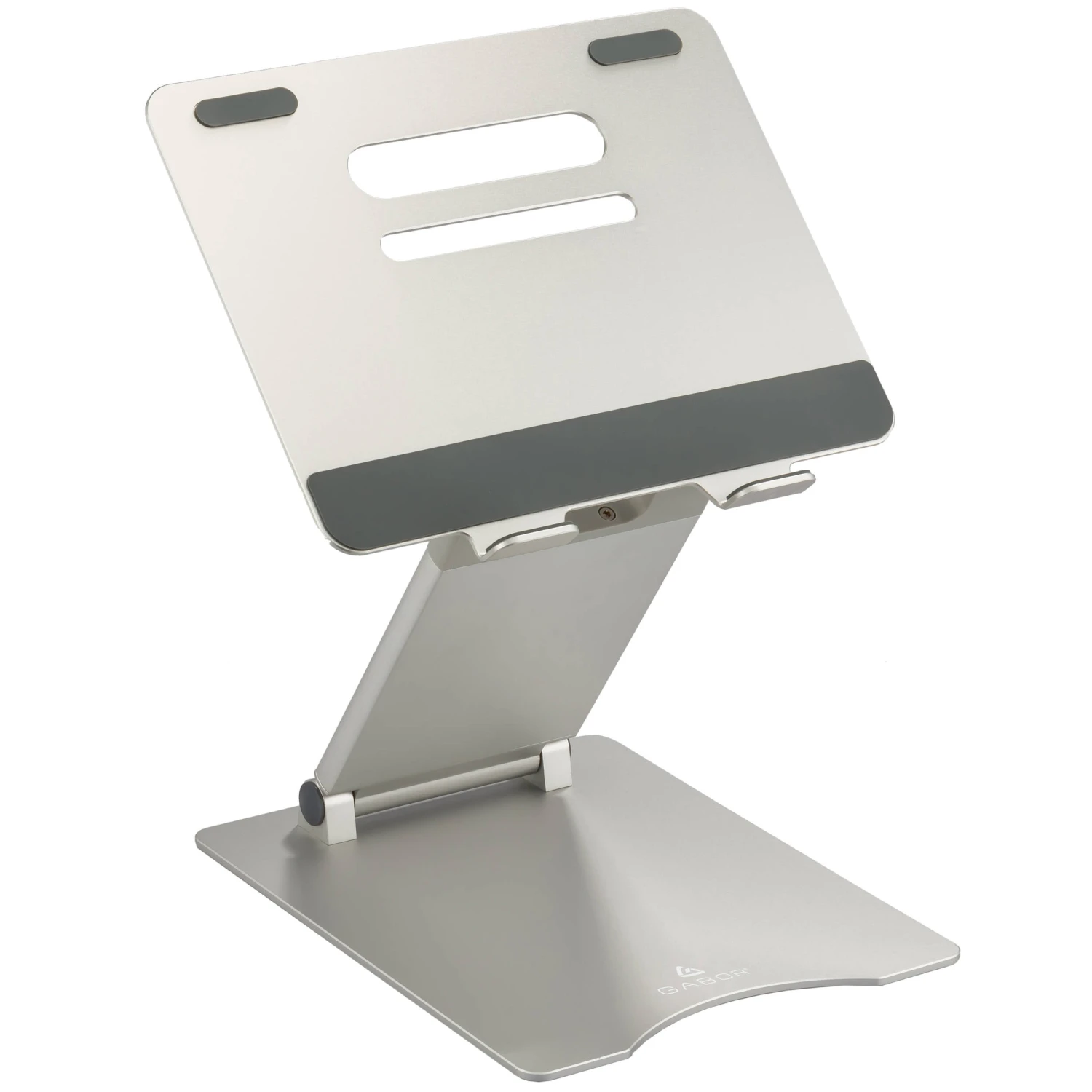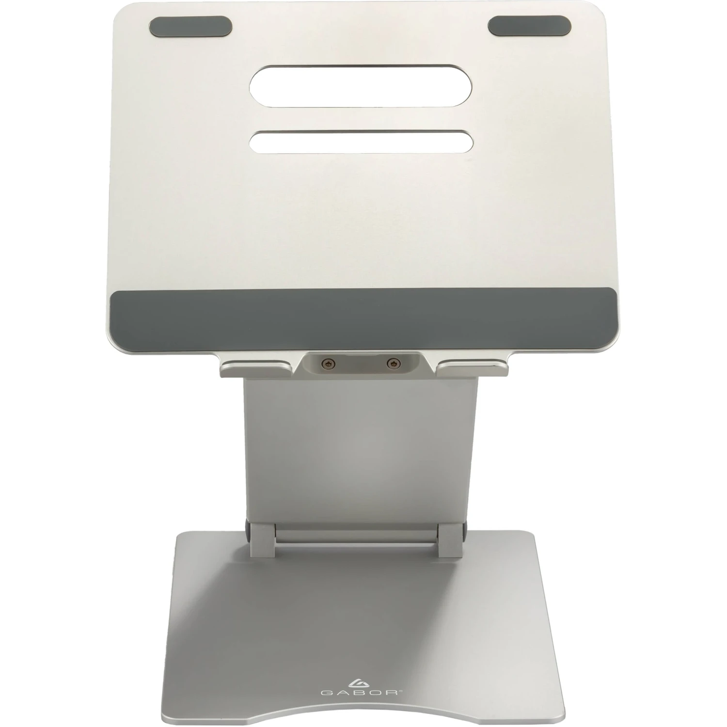 Optimize your workspace for comfort and efficiency with the Gabor Laptop Rising Flex Stand. This fully adjustable aluminum stand can raise your 10 to 17″ laptop screen up to 12.7″ for an eye-level view that helps to relieve shoulder and neck tension. The tilt also provides added comfort as you type. Simply extend the stand to your desired height and tighten it to lock in the position. The stand collapses to a 2.2″ thickness for easy travel.