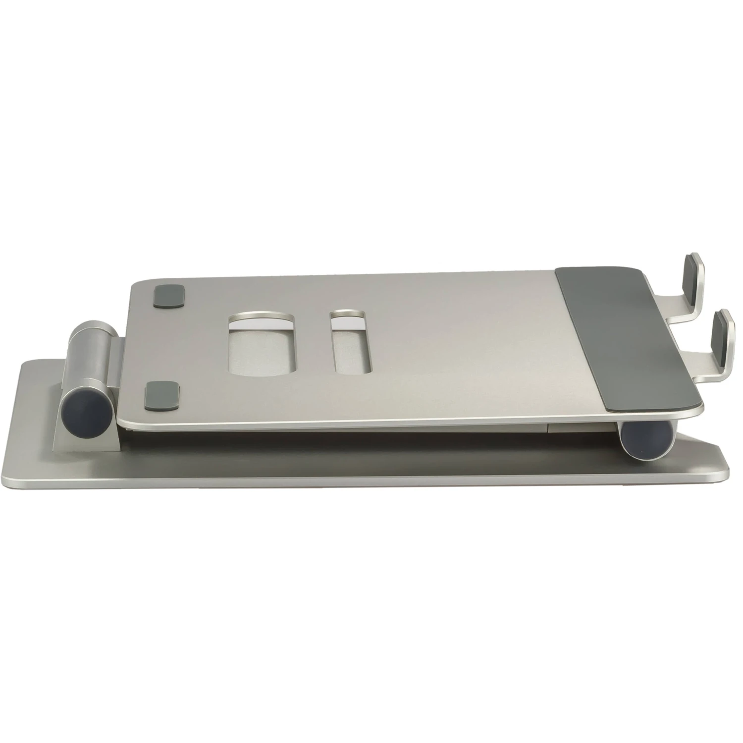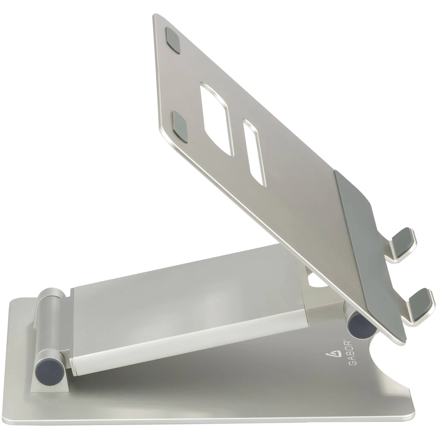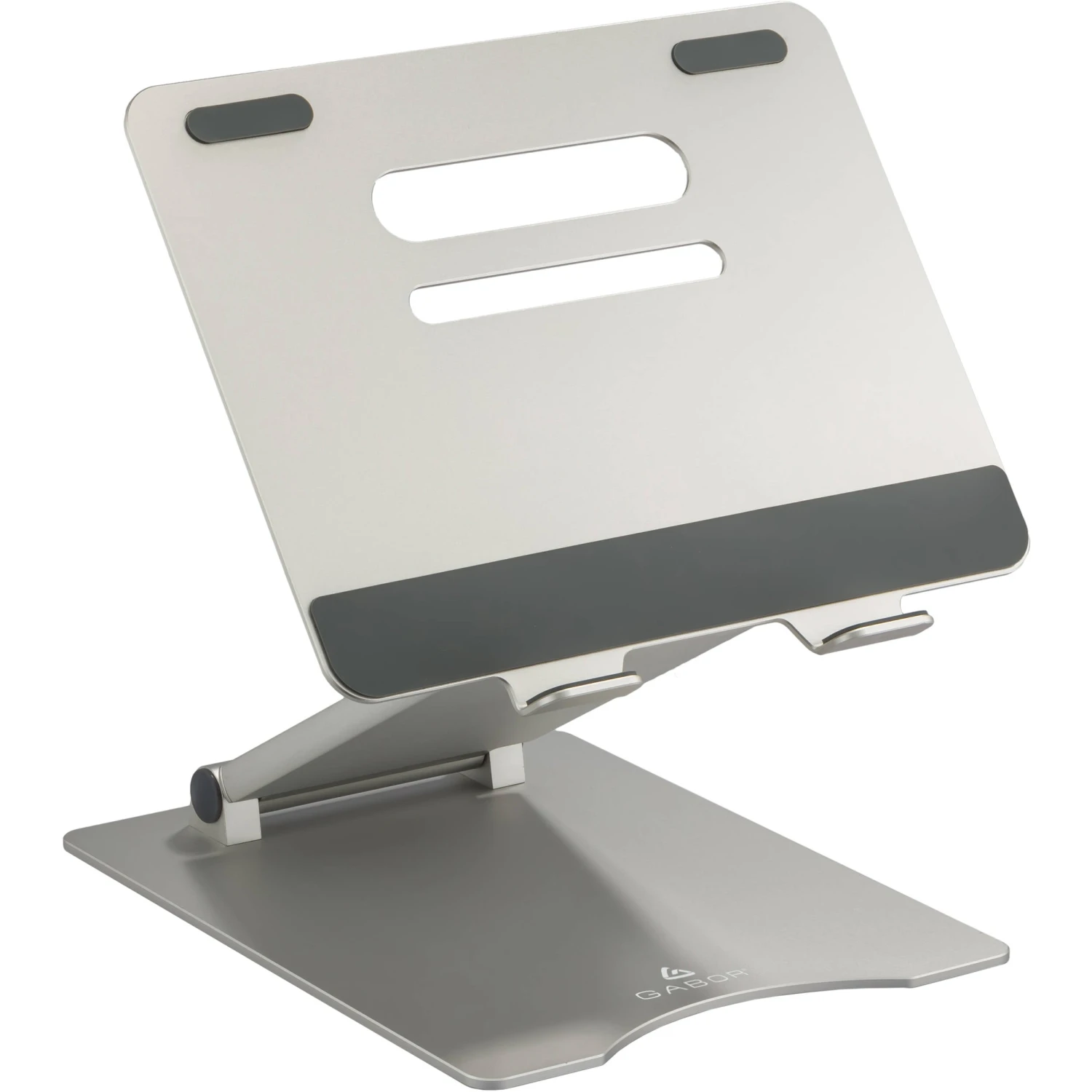Optimize your workspace for comfort and efficiency with the Gabor Laptop Rising Flex Stand. This fully adjustable aluminum stand can raise your 10 to 17″ laptop screen up to 12.7″ for an eye-level view that helps to relieve shoulder and neck tension. The tilt also provides added comfort as you type. Simply extend the stand to your desired height and tighten it to lock in the position. The stand collapses to a 2.2″ thickness for easy travel.