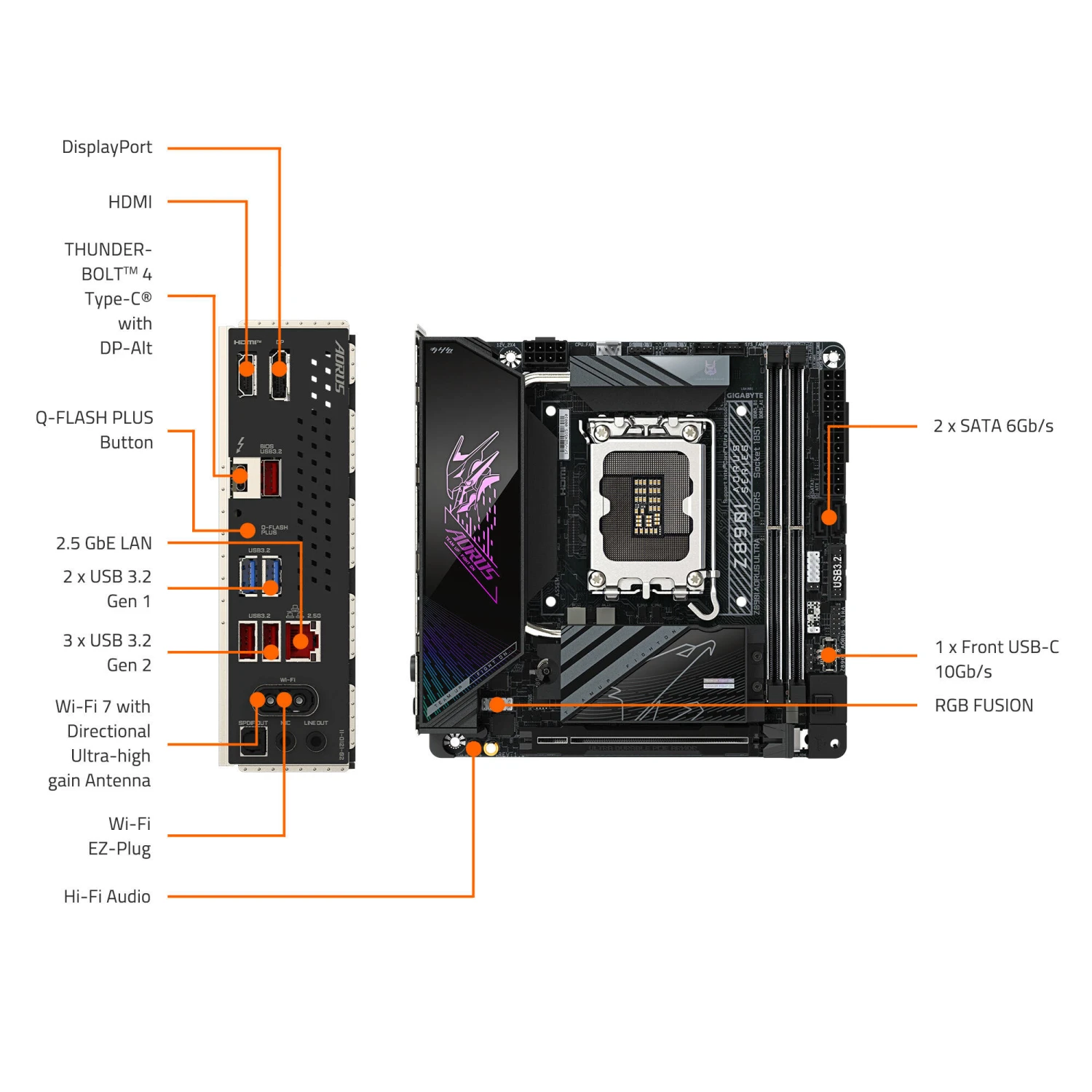 - Gigabyte Z890I AORUS ULTRA LGA 1851 Mini-ITX Motherboard (Matte Black)