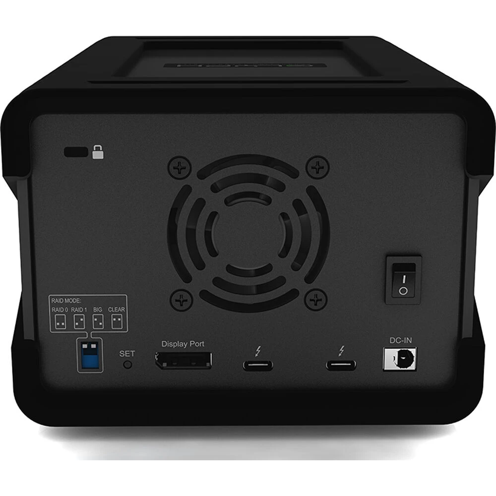 Connect to a monitor via a DisplayPort interface and use the integrated hub to connect to wired peripherals via a USB-A 3.2 Gen 2 port. Additionally, the hub sports a CF 2.0 and SD card reader slot for easy access of compatible memory cards. A quiet cooling fan helps keep temperatures low, along with an aluminum construction that encourages passive cooling. Compatible with macOS and Time Machine ready right out of the box, this RAID array is also compatible with Windows after a reformat.