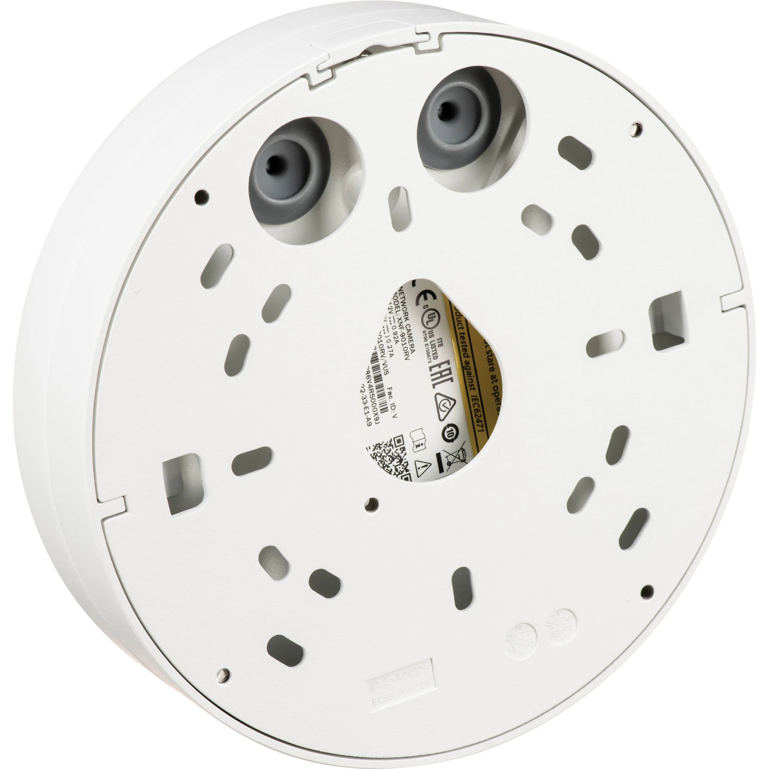 Monitor an indoor or outdoor area with the white XNF-9010RV 12MP Fisheye Network Dome Camera from Hanwha Techwin. This unit uses a 1/2.3″ CMOS sensors to capture 3008 x 3008 resolution video per sensor at 30 fps. Wise IR provides up to 33′ of night vision. The camera is equipped with a 1.08mm fixed lens that delivers a 187° field of view (horizontal, vertical, and diagonal). Two-way audio is possible thanks to a built-in microphone, an audio input, and an audio output. Two memory card slots accept microSD/SDHC/SDXC cards for total storage up to 1TB (512GB max each, available separately). Integrated PoE technology simplifies connectivity by transferring data and power through a single cable.