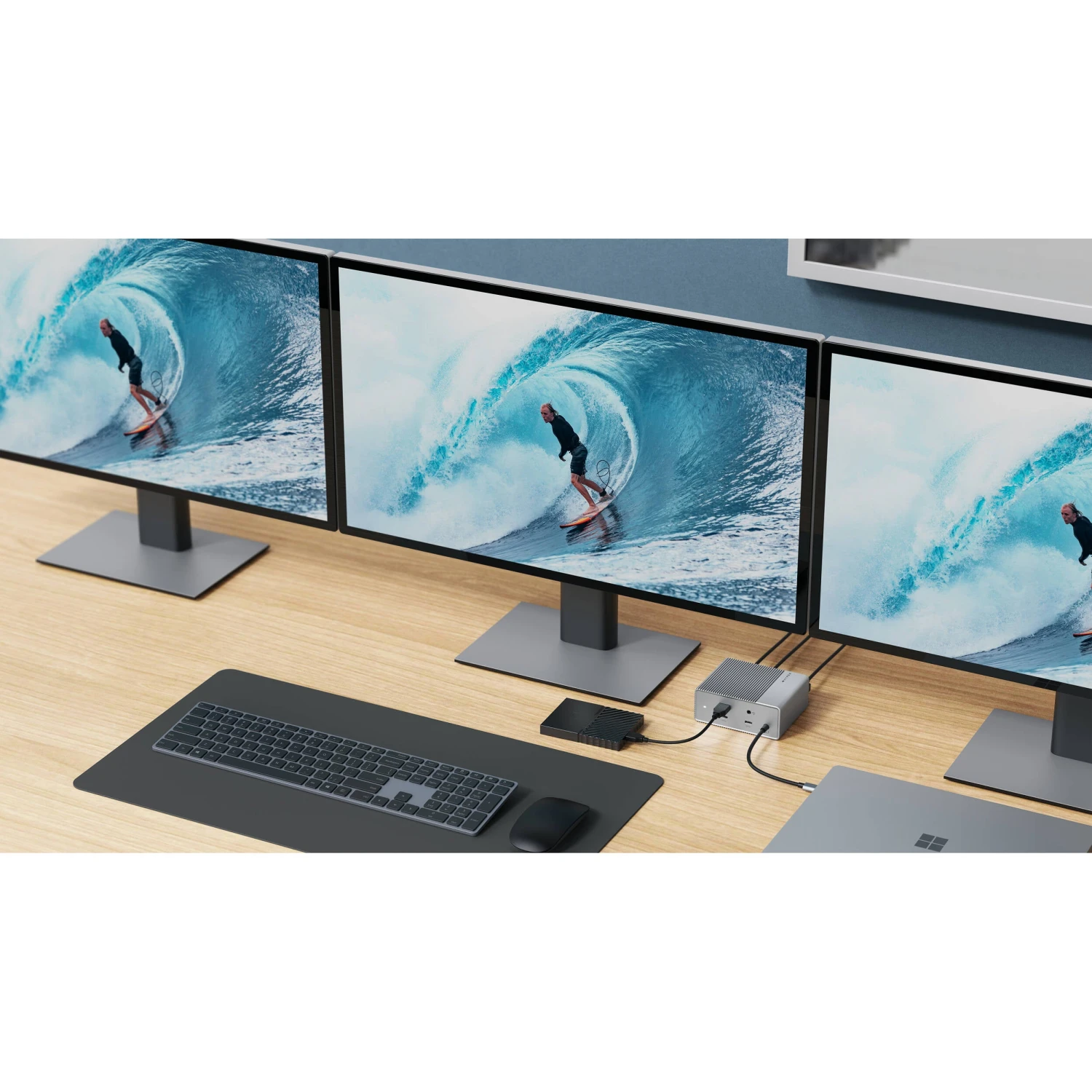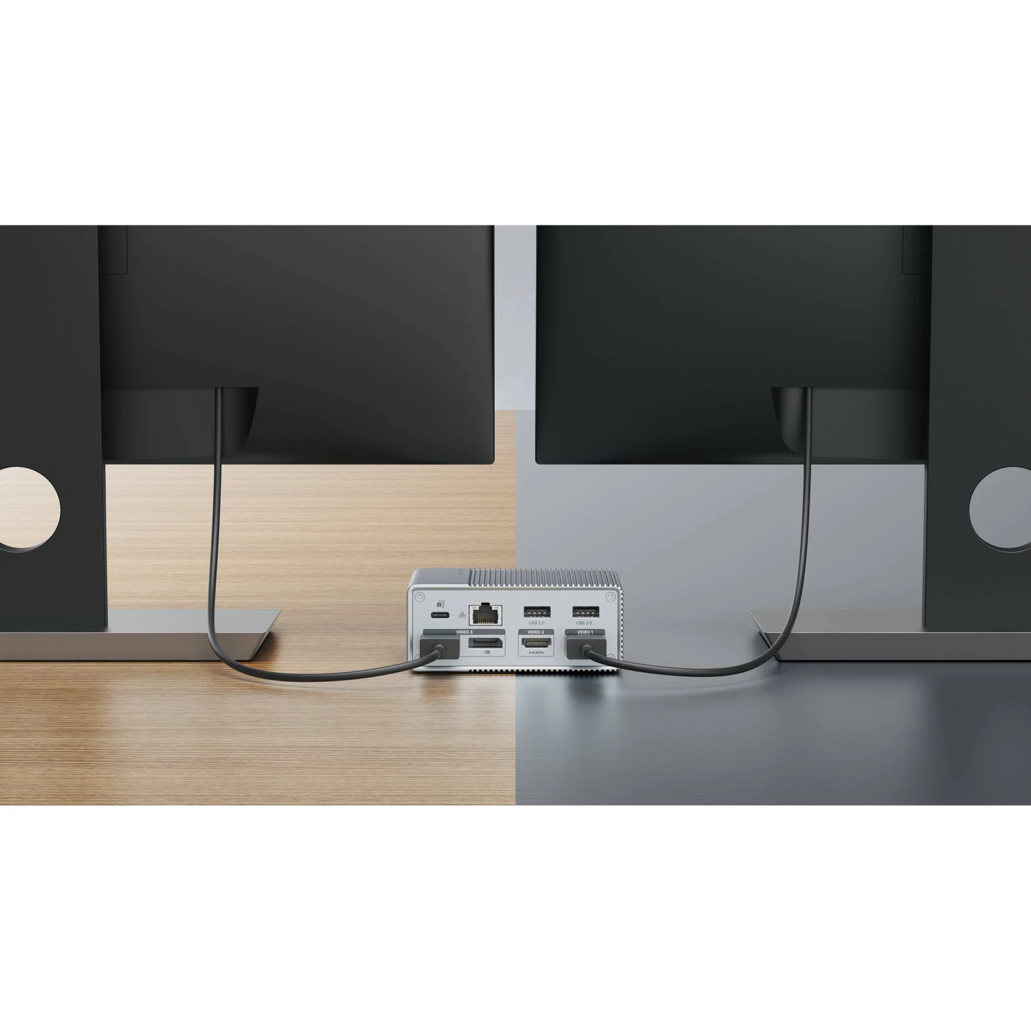 Maximize your workspace with the HYPER HyperDrive GEN2 12-Port USB Type-C Docking Station. This docking station connects via USB 3.2 Gen 2 Type-C, which provides up to 85W of charging. For connecting peripherals and accessories, you can utilize the two USB 3.2 Gen 2 Type-C ports and the two USB 3.2 Gen 2 Type-A ports for 10 Gb/s data transfer rates. There is a USB Type-C charging port that has 100W of Power Delivery.