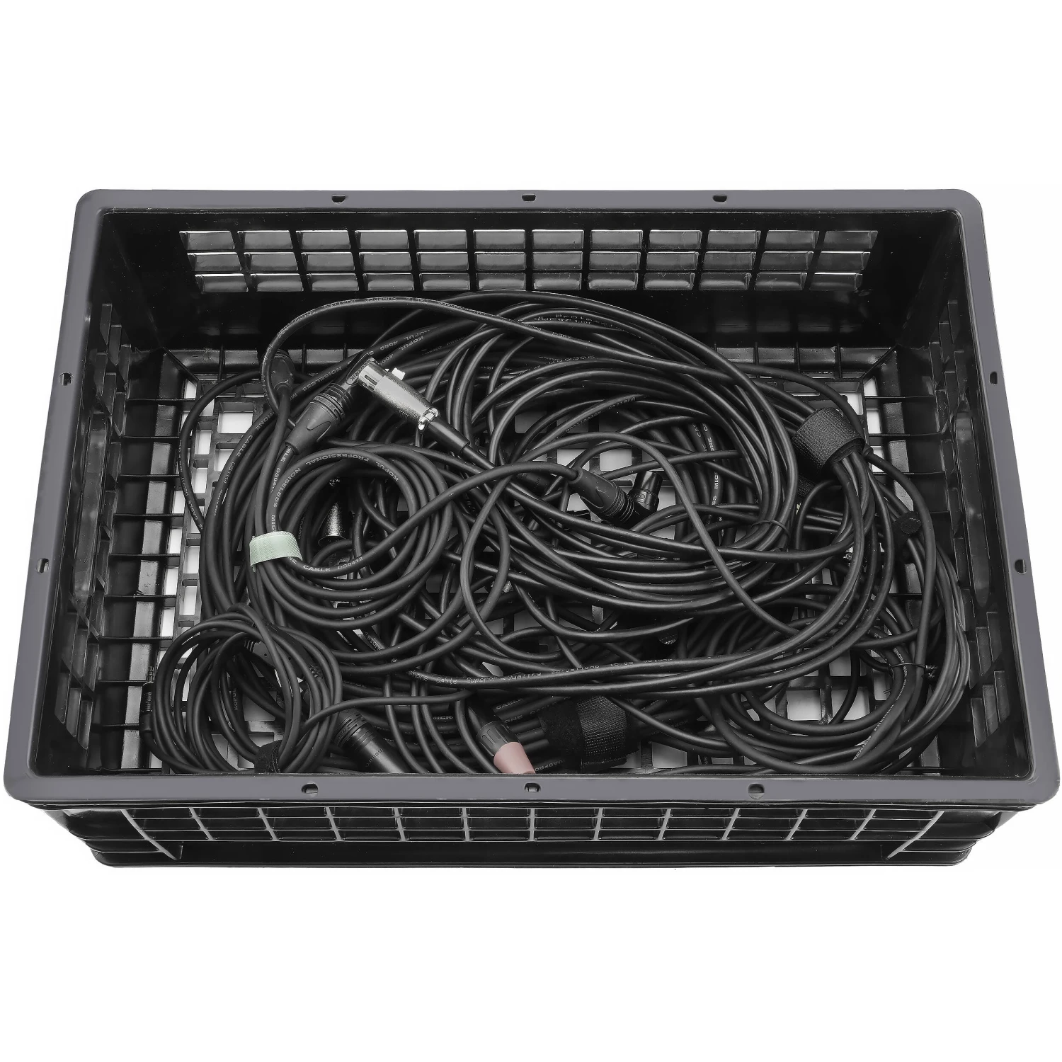 The half-size Milk Crate from Impact, often referred to as a school crate, is constructed with high-density polyethylene for maximum durability, ensuring it won’t bend or sag under heavy loads. The crate is ideal for transporting loose grip and production gear to various sets and locations, and its stackable design makes it perfect for use on backstage equipment carts and for storage. Comfortable carry handles on all sides make it easy for one or two people to move gear.